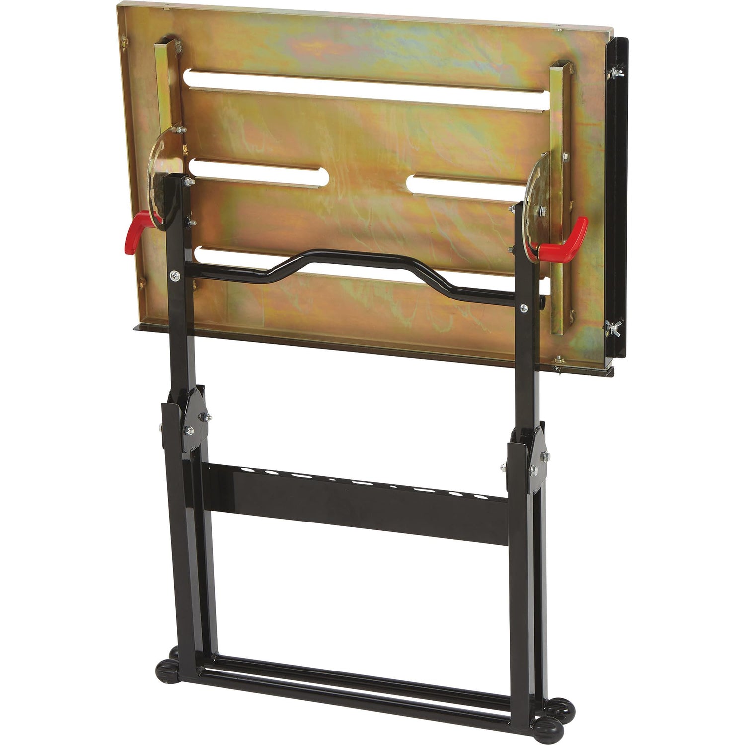 Details: This Klutch Adjustable Steel Welding Table features a rugged steel worktop with 4 slots to conveniently hold materials while you weld. Heavy-duty zinc plating reduces spatter buildup on the welding surface. 400-lb. weight capacity. Fully adjustable table angle for versatility and easy access to the spots on your work piece that need welding.