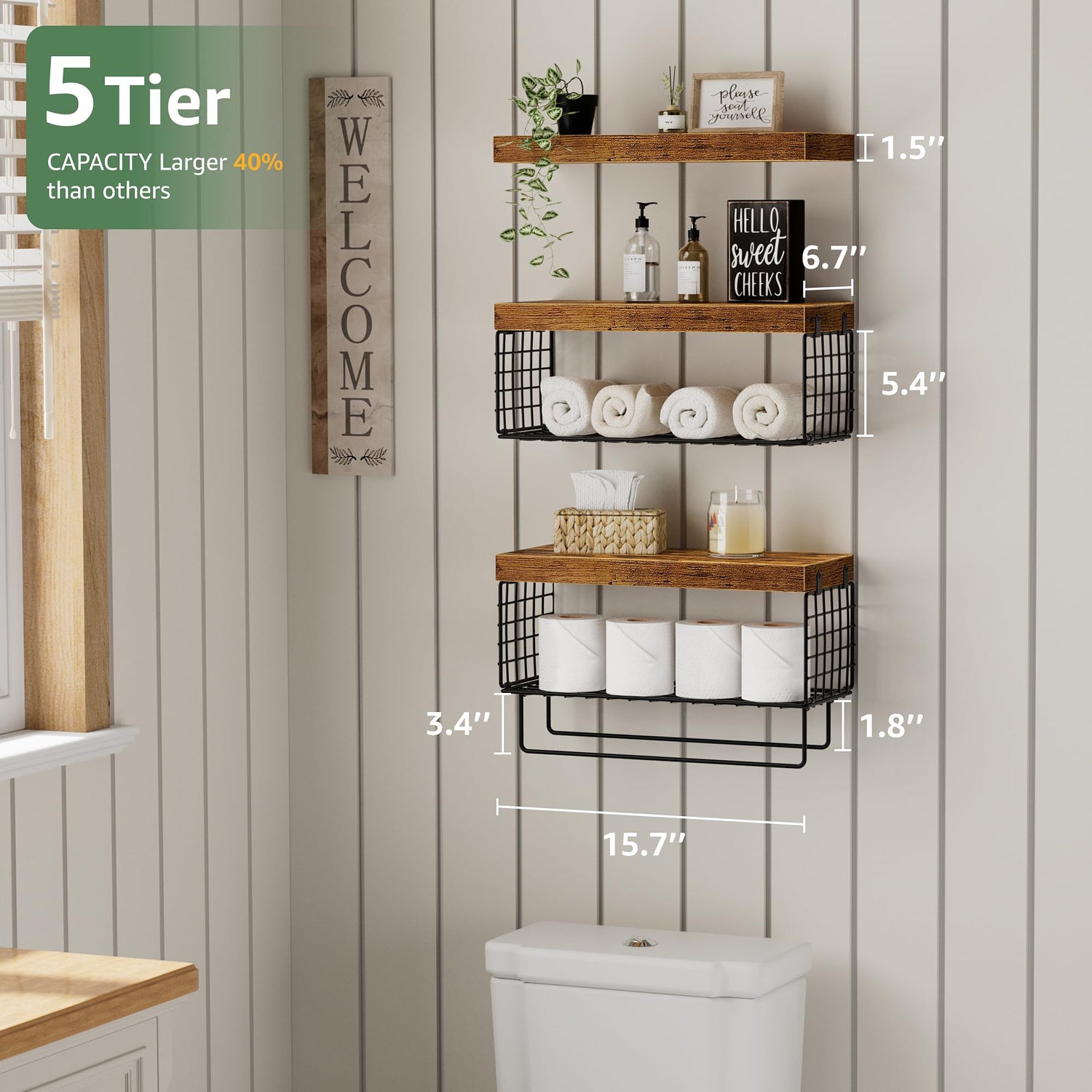 - 2 Baskets Storage: 6.7"D x 15.7"W x 1.5"H, maximize vertical space, each basket easily stores 4 toilet paper rolls