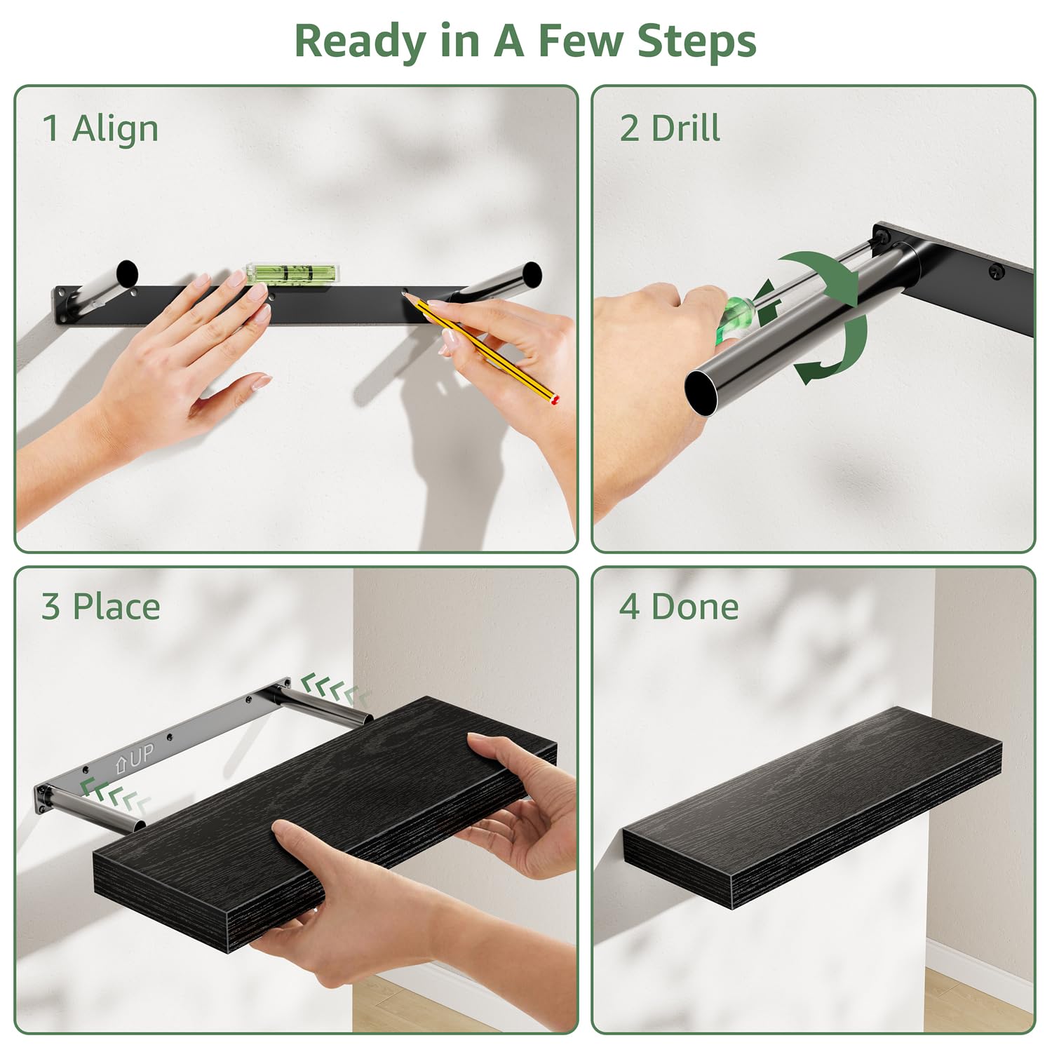- Invisible Brackets: Clean look, 25lb load capacity for sturdy, everyday bathroom storage that lasts