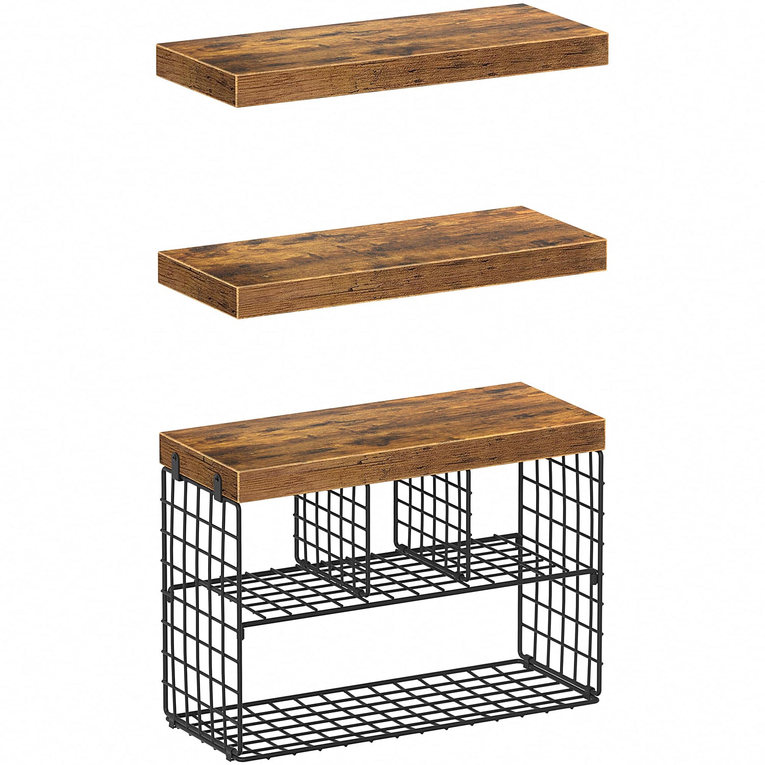 KLUVIS Bathroom Floating Shelves for Wall - Shelf Over Toilet Storage Small Farmhouse Decor Shelves (15.7 inch, Set of 3, Rustic Brown)