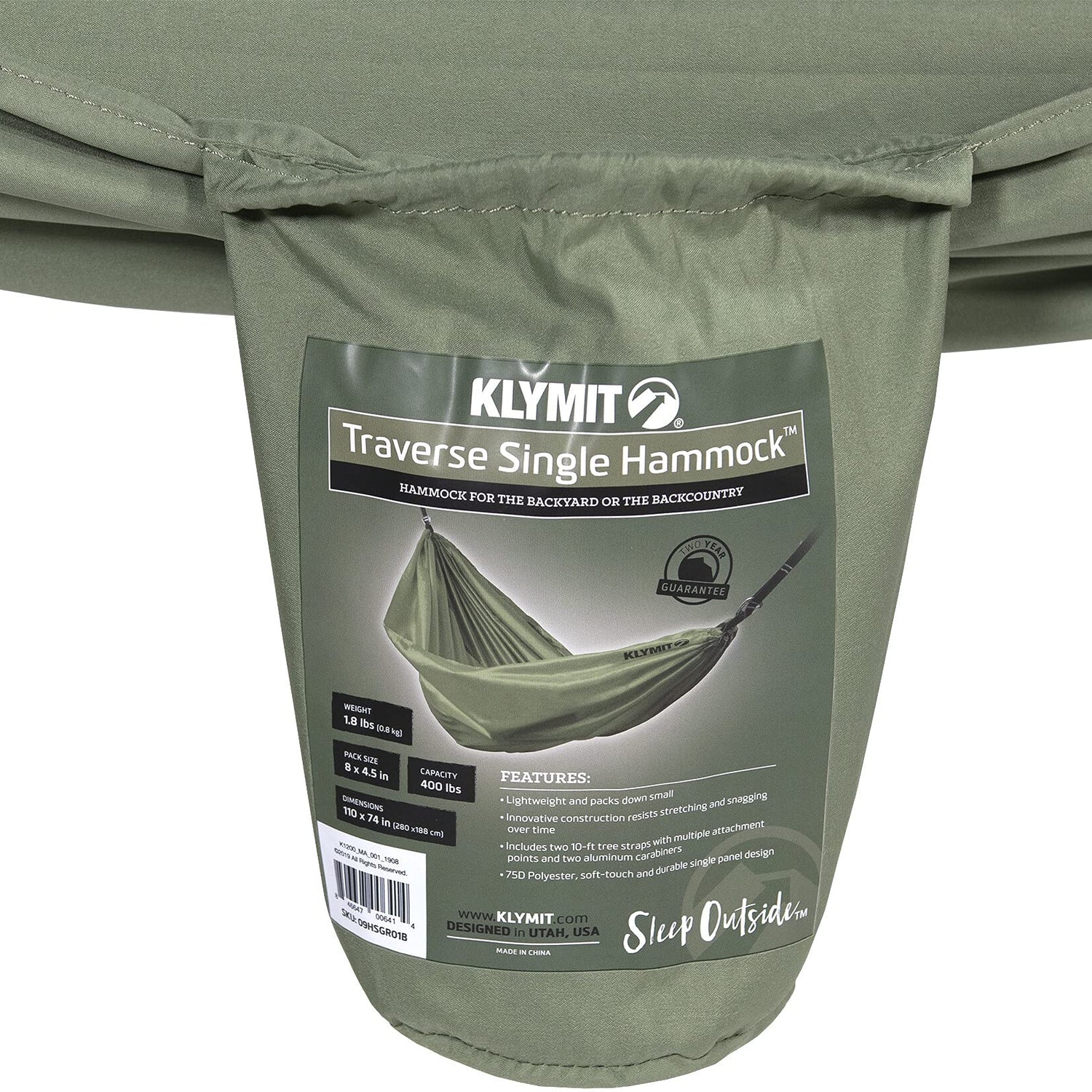 Klymit Single Traverse Hammock, Portable Hammock for Camping, Green