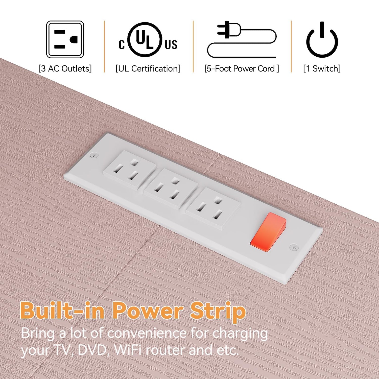 - 【TV Media Console Shelf with Power Outlet】 This media entertainment center TV stand with a built-in power strip and 3 standard plug outlets provide convenience for charging your TV, Wifi router, gaming gear, vinyl record player, fan, etc.