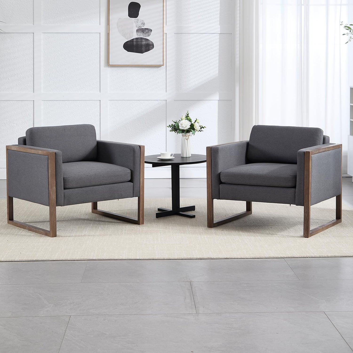 Kmax Modern Accent Chairs Set of 2, Charcoal Fabric Upholstered Club Chair, Comfy Arm Reception Chairs Living Room Chair for Hotel Conference, Walnut Wood