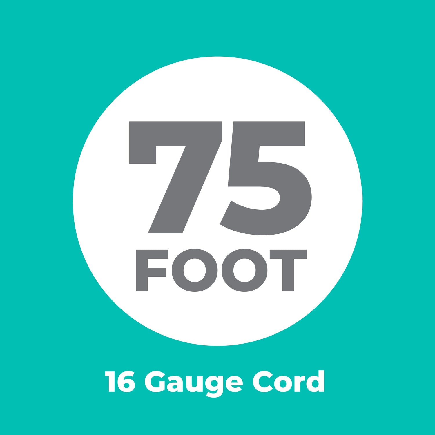 - DURABLE: This weatherproof 75-foot outdoor extension cord has a 16-gauge cable with vinyl protective jacket to resist moisture, abrasions, sun exposure and harsh weather conditions.