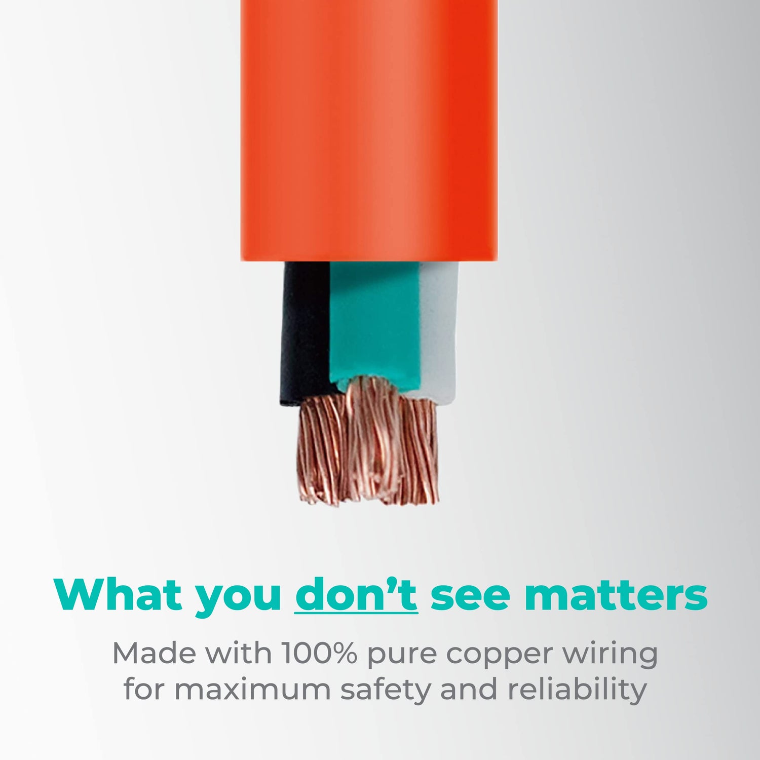 - RELIABLE: 100% pure copper wiring and insulated conductors with 3-prong grounding plug, provides a safe and reliable connection.