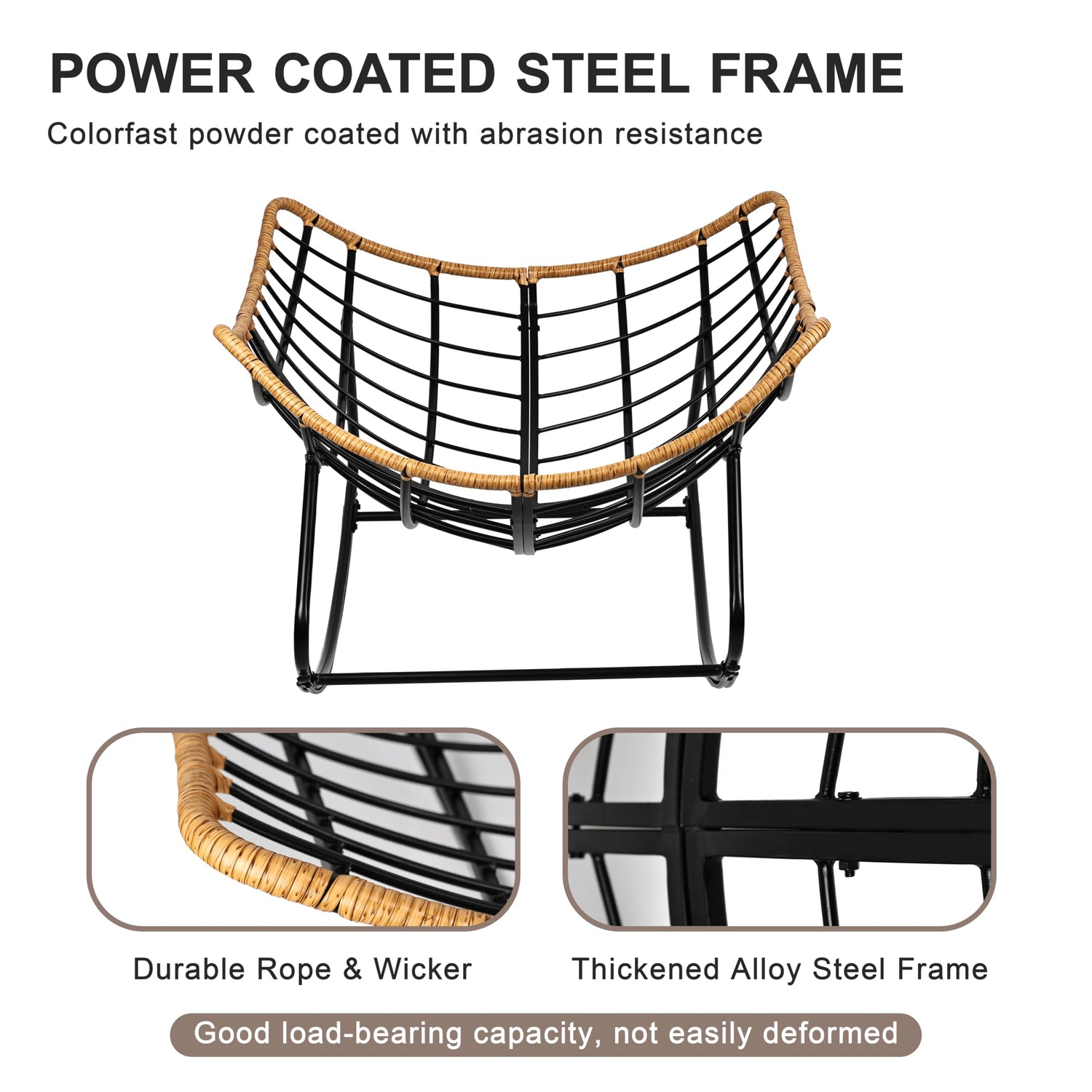 - STURDY & DURABLE: Built with a powder-coated steel frame, this patio rocking chair supports up to 450 pounds. The rounded corners are designed to be child-friendly, making it a safe choice for outdoor use. The curved base features non-slip foot pads and strips to ensure smooth and quiet rocking.