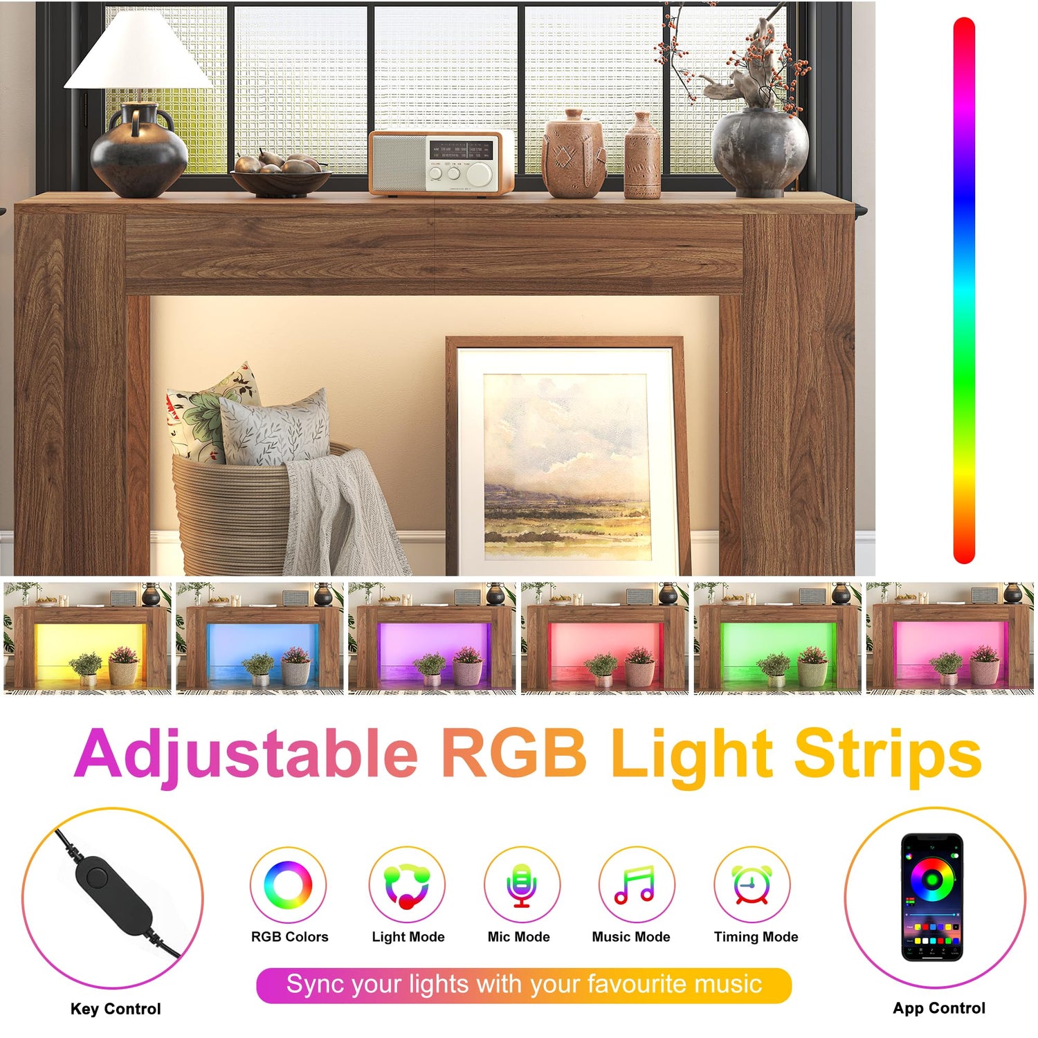 - Set the Mood with Dynamic RGB Lighting - Elevate your décor with built-in LED light strips featuring 16 million customizable colors and adjustable brightness. Whether you’re hosting a dinner party and want to create a warm, inviting glow or simply seeking a cozy reading nook, adjust the lighting colors to match your mood and decor.