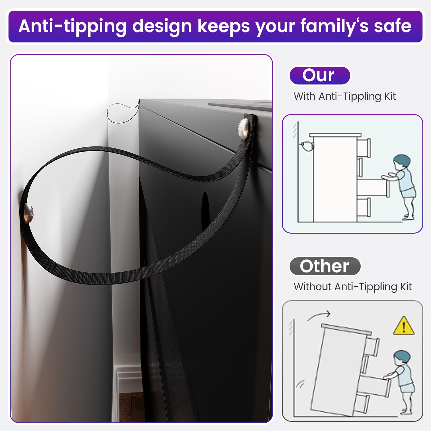 - Focus On Details: 1, The innovative design backboard makes the dressers bedroom furniture more stable, better sealed, and dustproof. 2, The base is equipped with plastic gaskets, which can effectively avoid damage to the floor caused by the movement of the dresser. 3, A unique sturdy pedestal provides a classic appearance and extra stability. 4, Utilizing the anti-tippling kit secures the dresser anchored to the wall, Avoiding injury can and does happen at home.