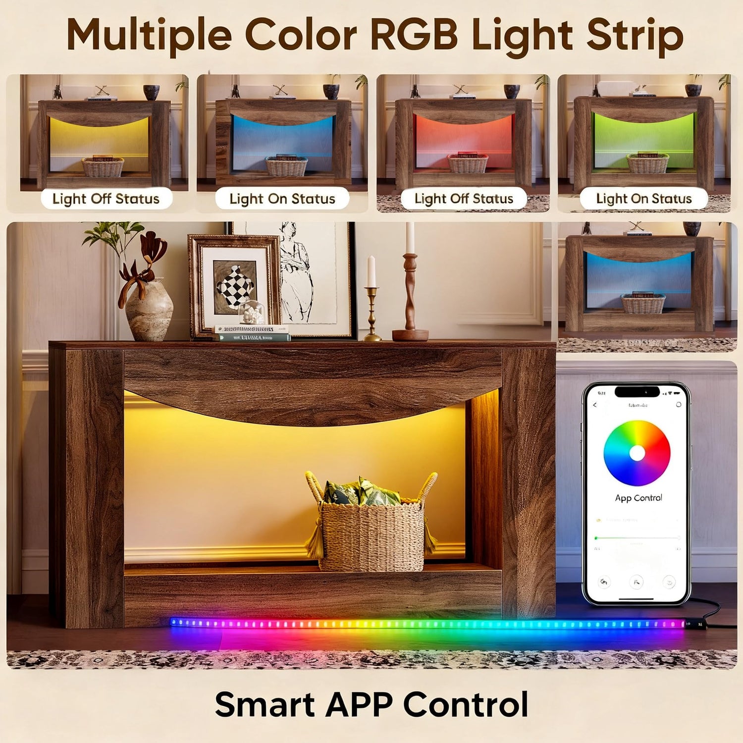 - 【Humanized RGB Lighting】Elevate your interior with built-in LED light strips, offering 16 million customizable colors and adjustable brightness to create a warm and inviting atmosphere. Ideal for setting the mood at dinner parties or crafting a cozy reading nook, the lighting can be tailored to match any decor or occasion.