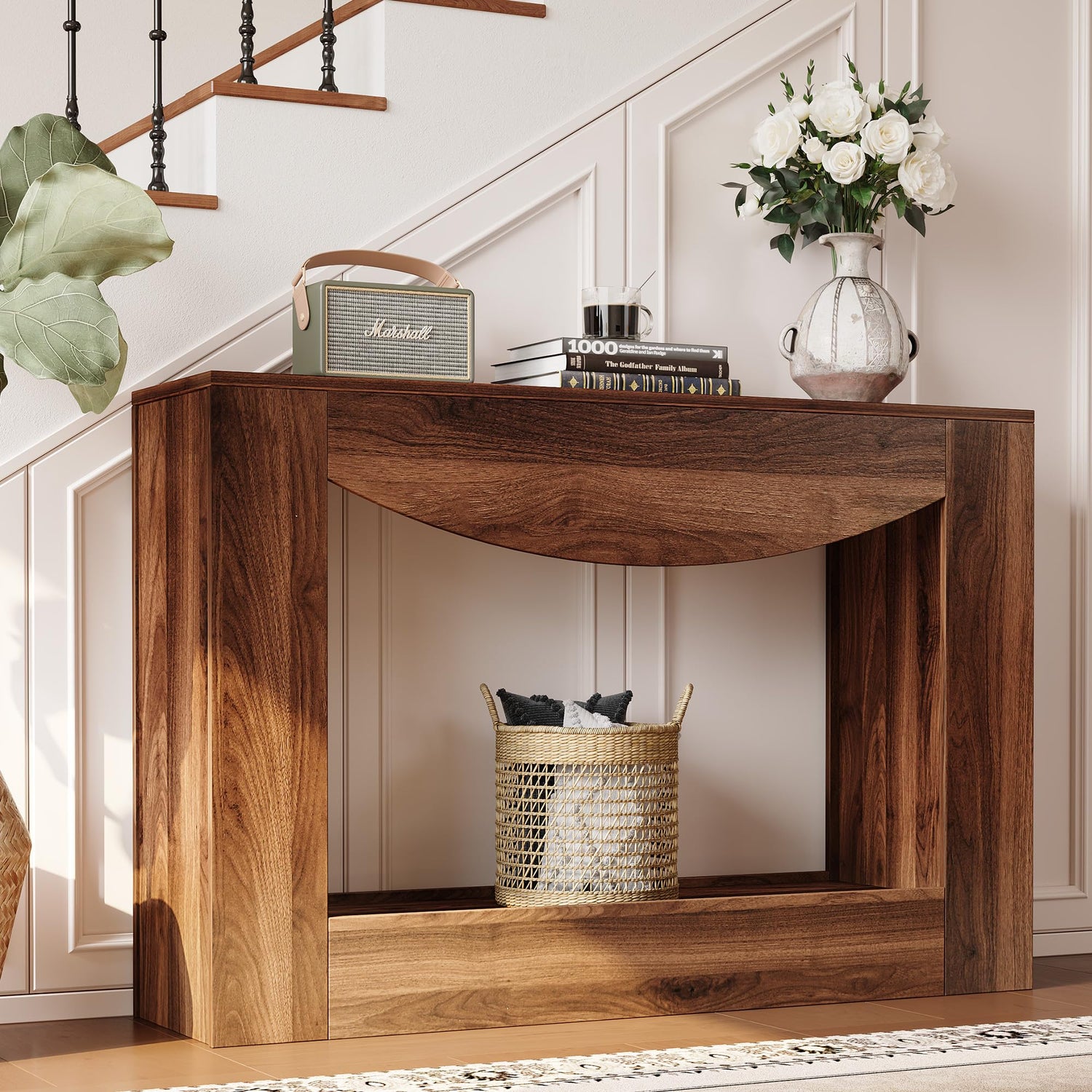 - 【Multi-Functional Entryway Solution】With its generous proportions, this piece excels as a sofa table, foyer table, hallway table, or even a TV stand. It provides an elegant platform for photo frames, plants, and other decorative items, adding charm and utility to living rooms, bedrooms, entryways, and beyond.