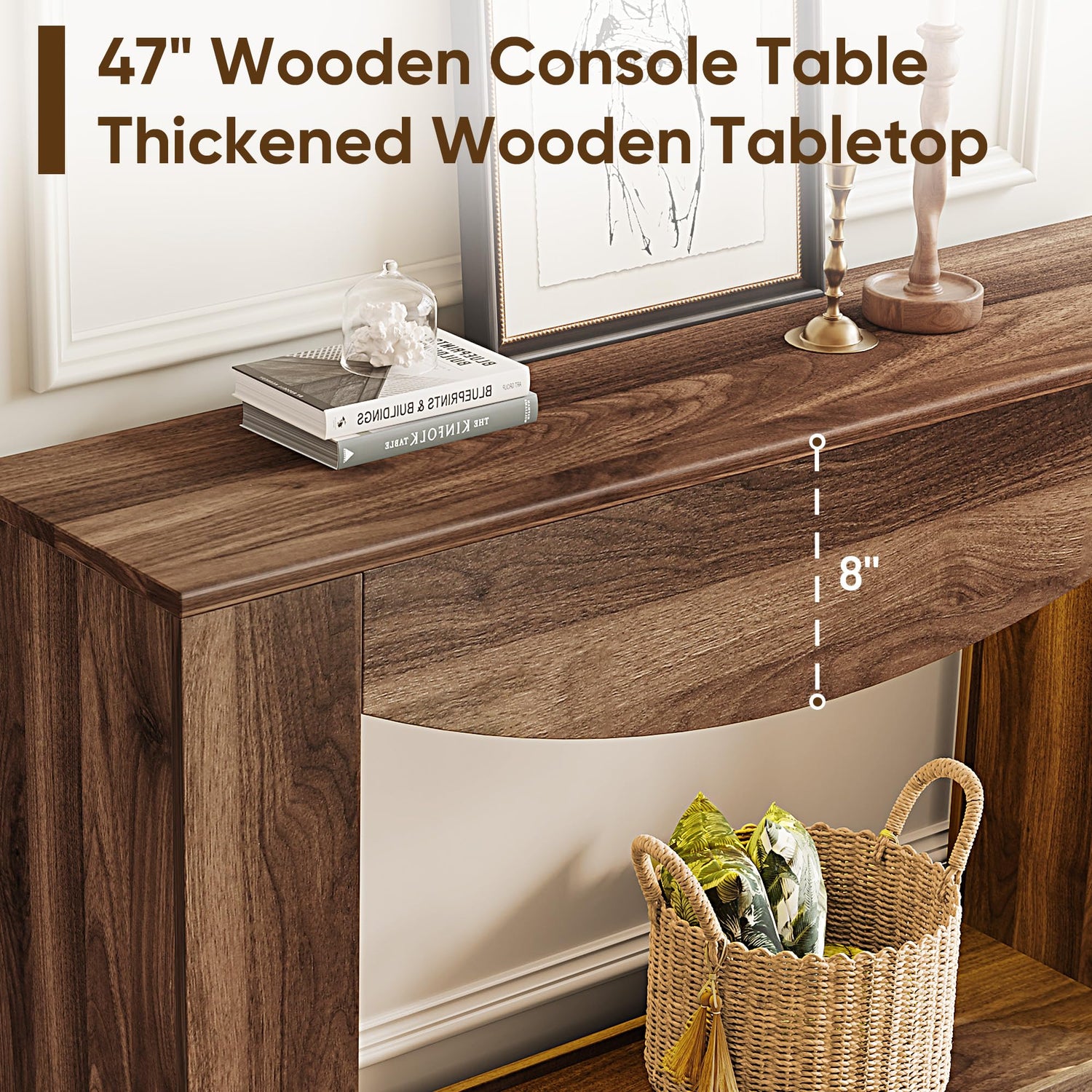 - 【Durable & Sturdy Build】Crafted with an extra-thick MDF top and a solid wood frame, this hallway table is built to resist daily wear and tear. The realistic wood-like finish enhances its rustic charm, while the reinforced structure ensures exceptional stability and prevents wobbling.