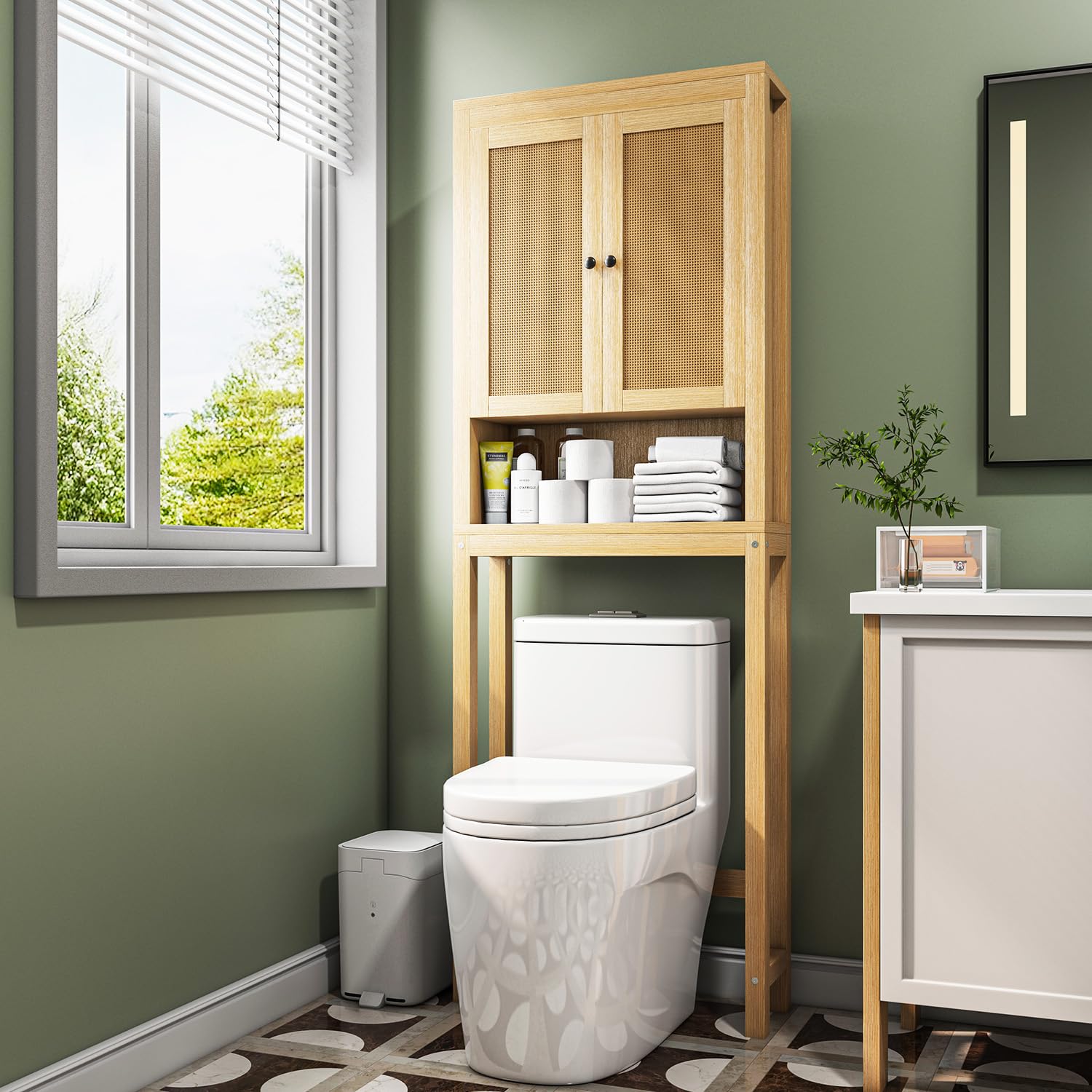 Rattan Over The Toilet Storage Cabinet – Chic Bathroom Organiser with Adjustable Shelf and Space-Saving Design