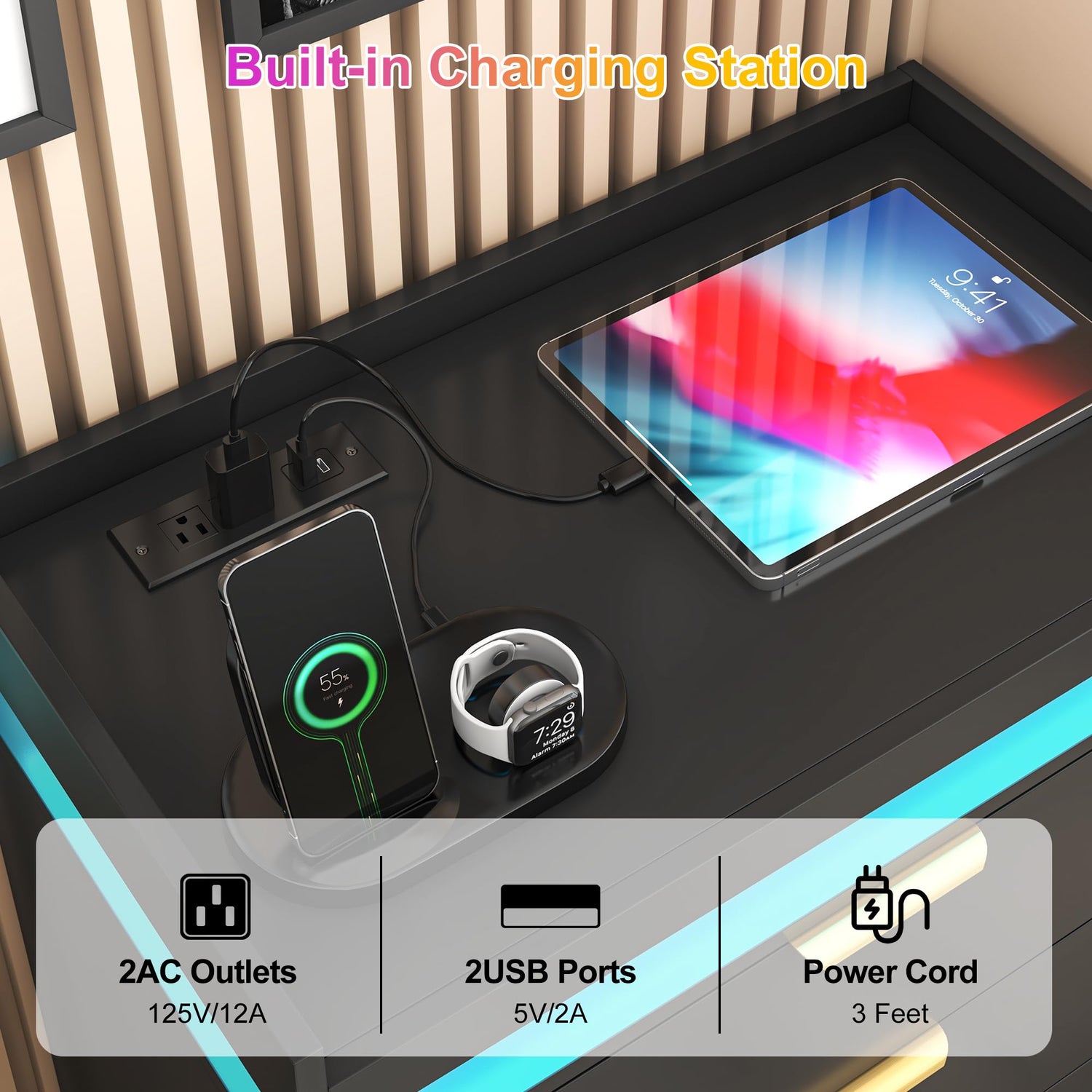 - 【Black Dresser with LED Lights】This 5 drawer dresser is equipped with multi-color RGB LED light strips, colors and brightness can be freely adjusted through the button and App, creating a warm and stylish atmosphere in any space. Combined with the dresser's fashion design, creates a visually stunning floating effect at the top.