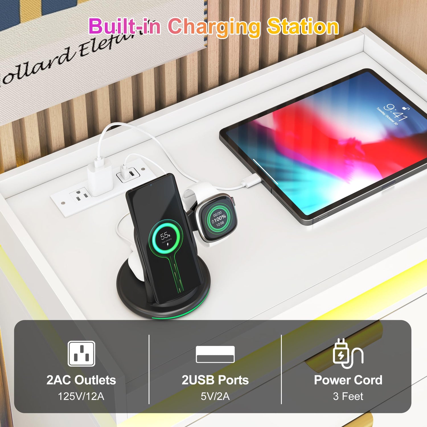 knoworld White Dresser with LED Lights, Wooden LED Dresser, 4 Drawer Chest with Charging Station, Tall Chest of Drawer Closet Organizer for Bedroom, Living Room, Entryway, Hallway