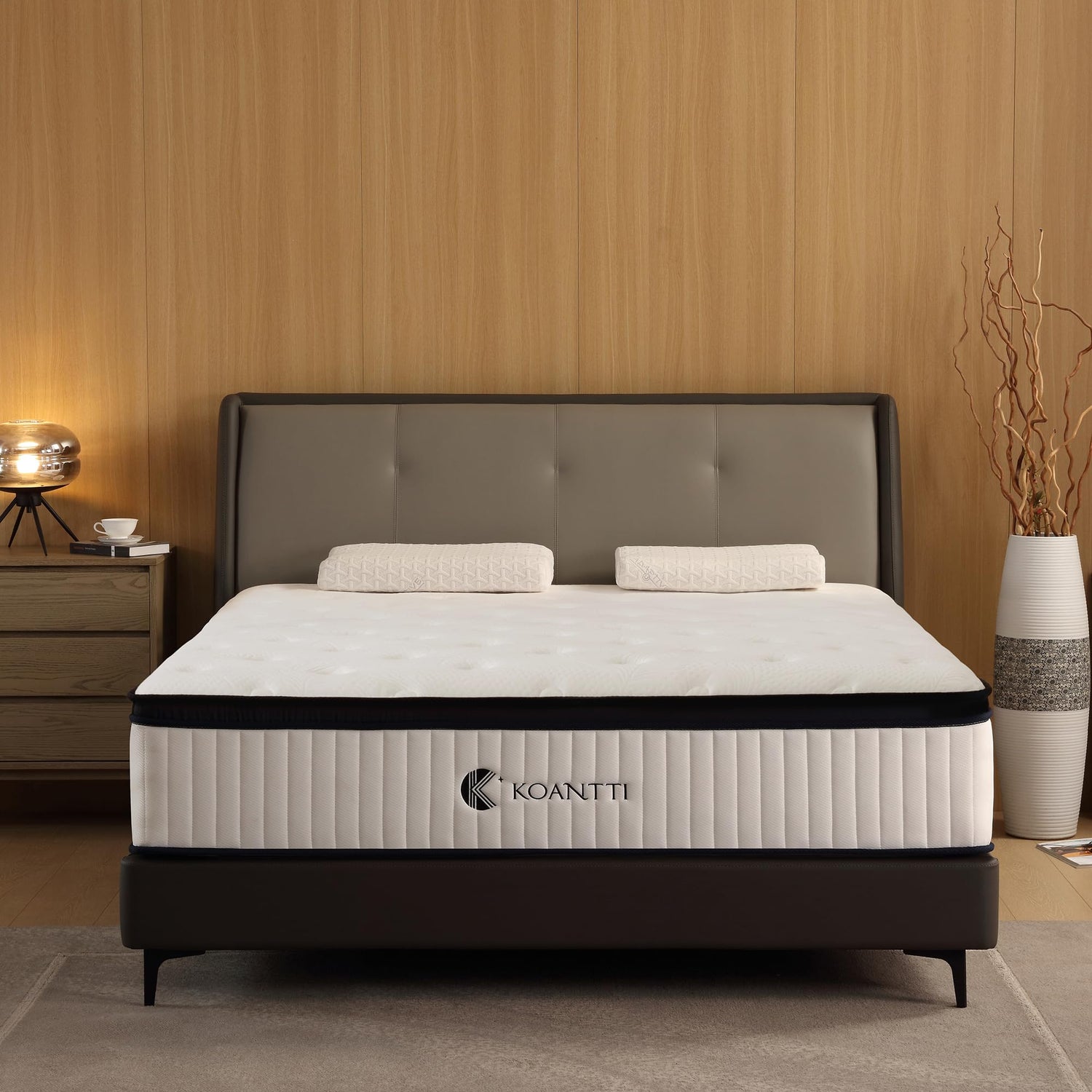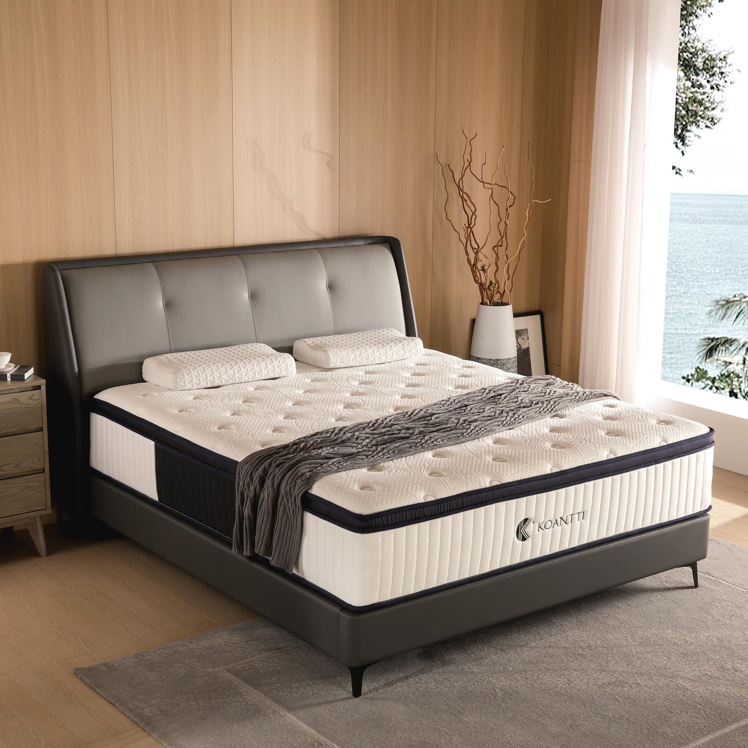 - BETTER SUPPORT, SWEET SLEEP: The KOANTTI 10 inch full size mattress has a built-in independent pocketed spring, which works perfectly with the comfortable memory foam to ensure that your weight is evenly distributed on the full mattress from head to toe. You can eliminate fatigue and pain, fully relax your muscles and enjoy a good sleep experience.