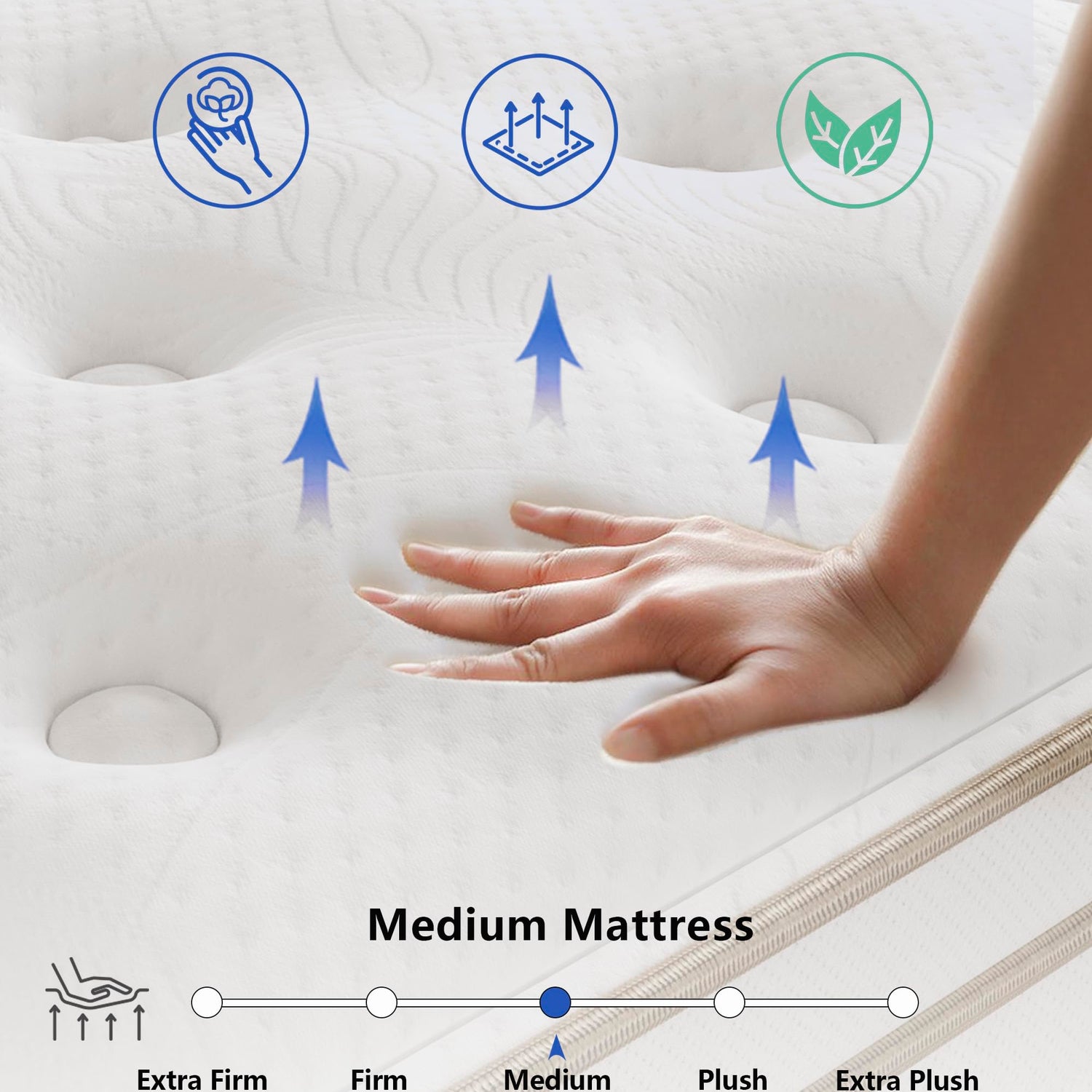 - High-quality Topper Sponge: Koantti king size spring hybrid mattress is made of high-quality knitted fabric; multi-layer high-quality sponge keeps you away from back pain. All memory foam is CertiPUR-US certified and tested to be free of harmful substances.