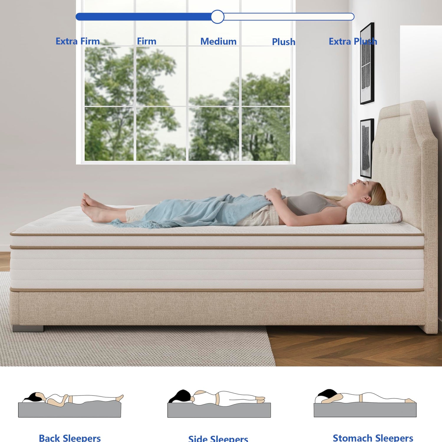 - Sweet Sleep and Comfortable Support: Koantti 10 inch queen size mattresses memory foam mixed with multi-layer foam and independent spring support system ensures that your weight is evenly distributed from head to toe and provides targeted support to fully relax muscles and enjoy a good sleep experience.