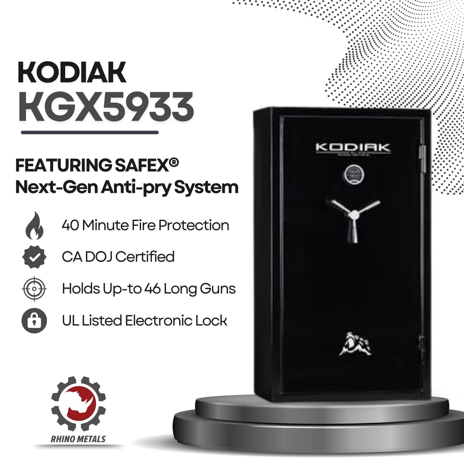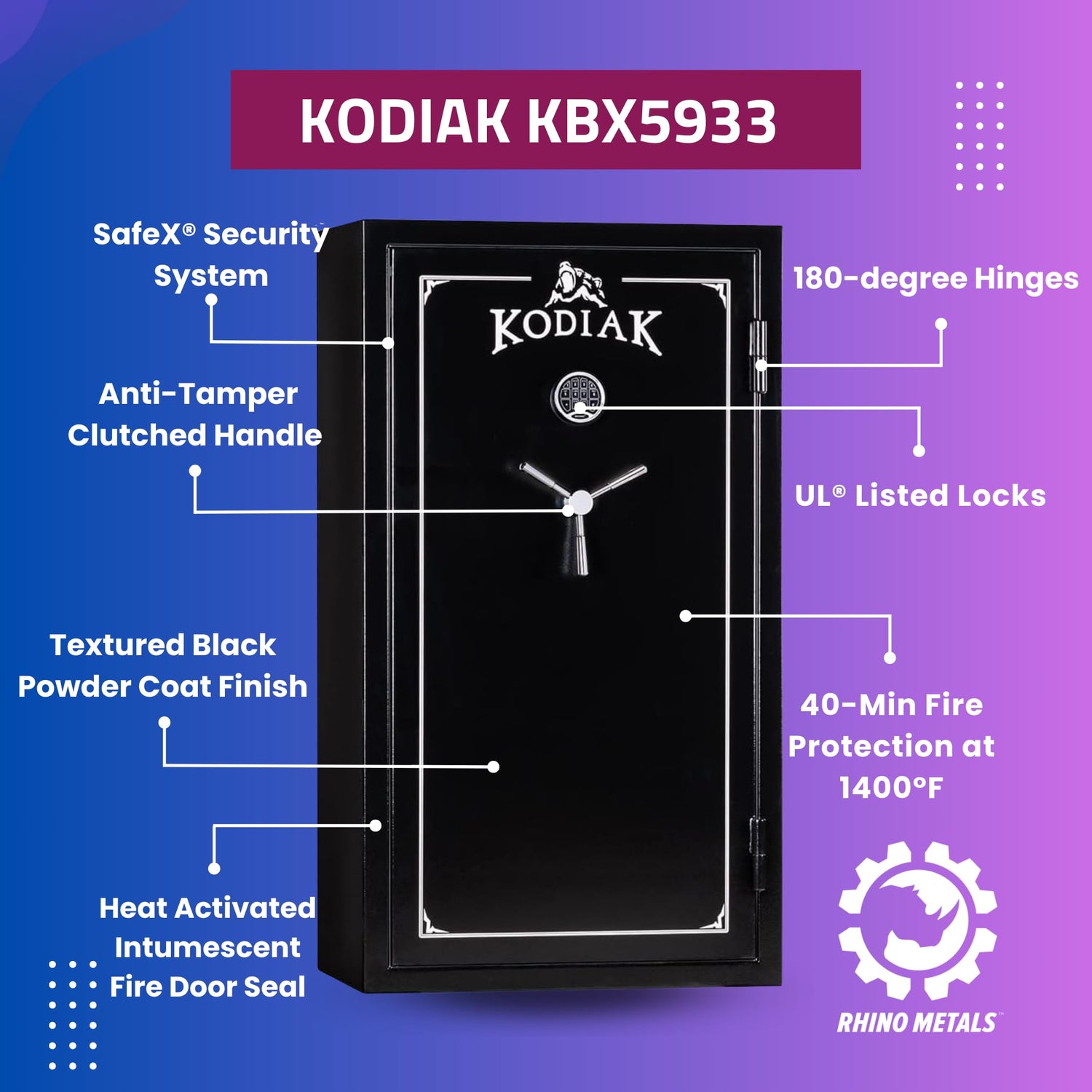 Kodiak Home Gun Safe for Rifles & Pistols | KBX5933 by Rhino Metals with New SafeX Security System | 46 Long Guns & 6 Pistol Pockets | 40 Minute Fire Protection | 395lbs