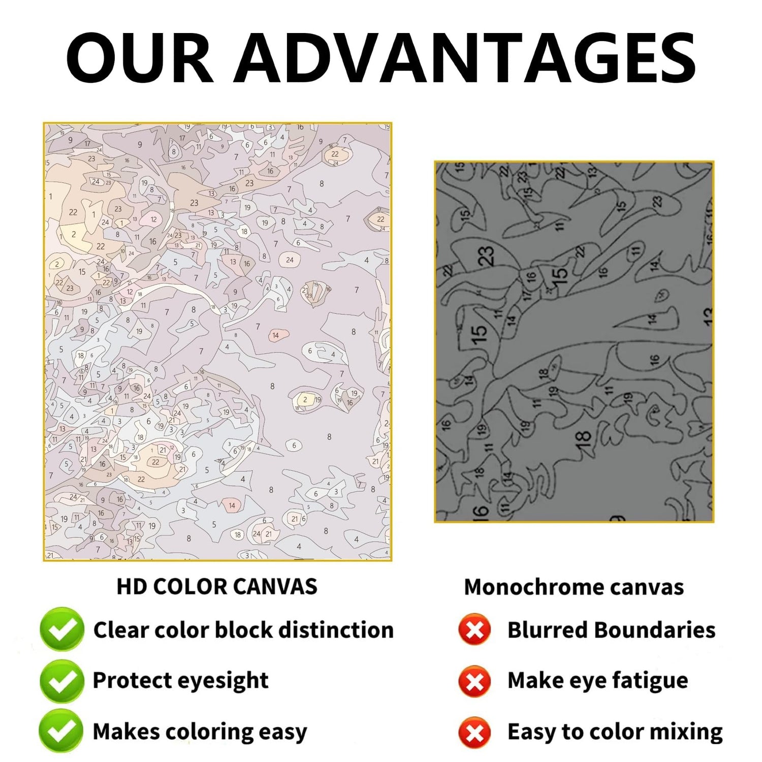 - COMPLETE KIT: Includes pre-printed numbered canvas, acrylic paints, brushes, and detailed instructions for a fulfilling painting experience