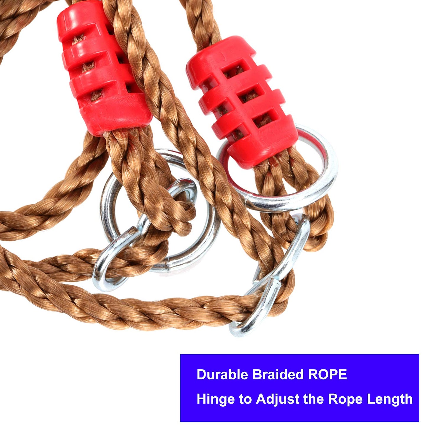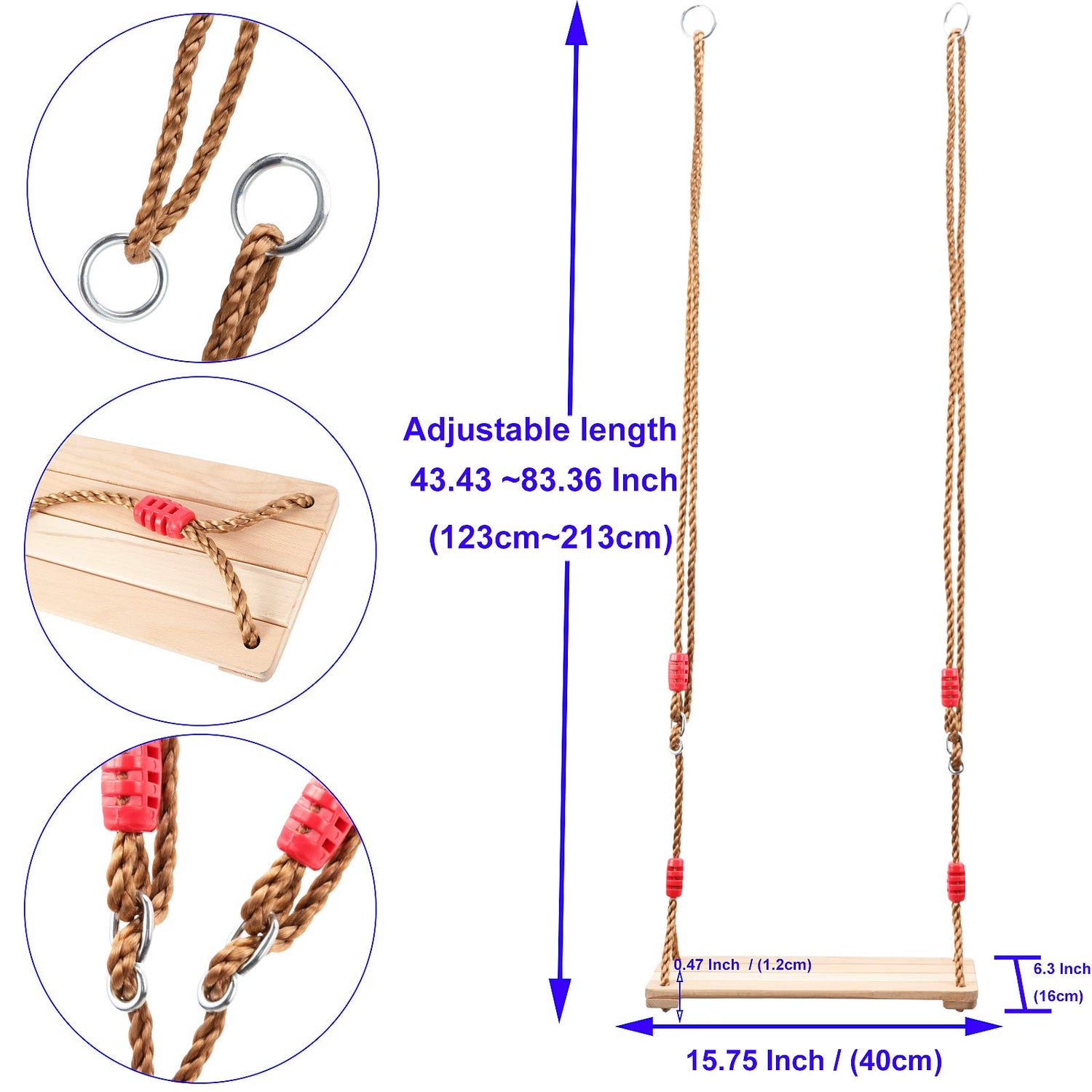 - STURDY & DURABLE - The wooden swing seat adopted thick birch wood along with metal rings and thick jute rope, providing additional durability and comfort. It keeps its original wood color, aesthetic and natural.