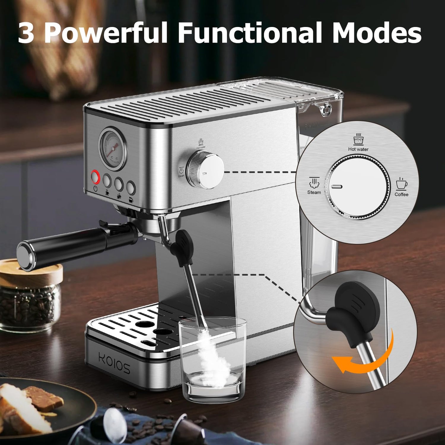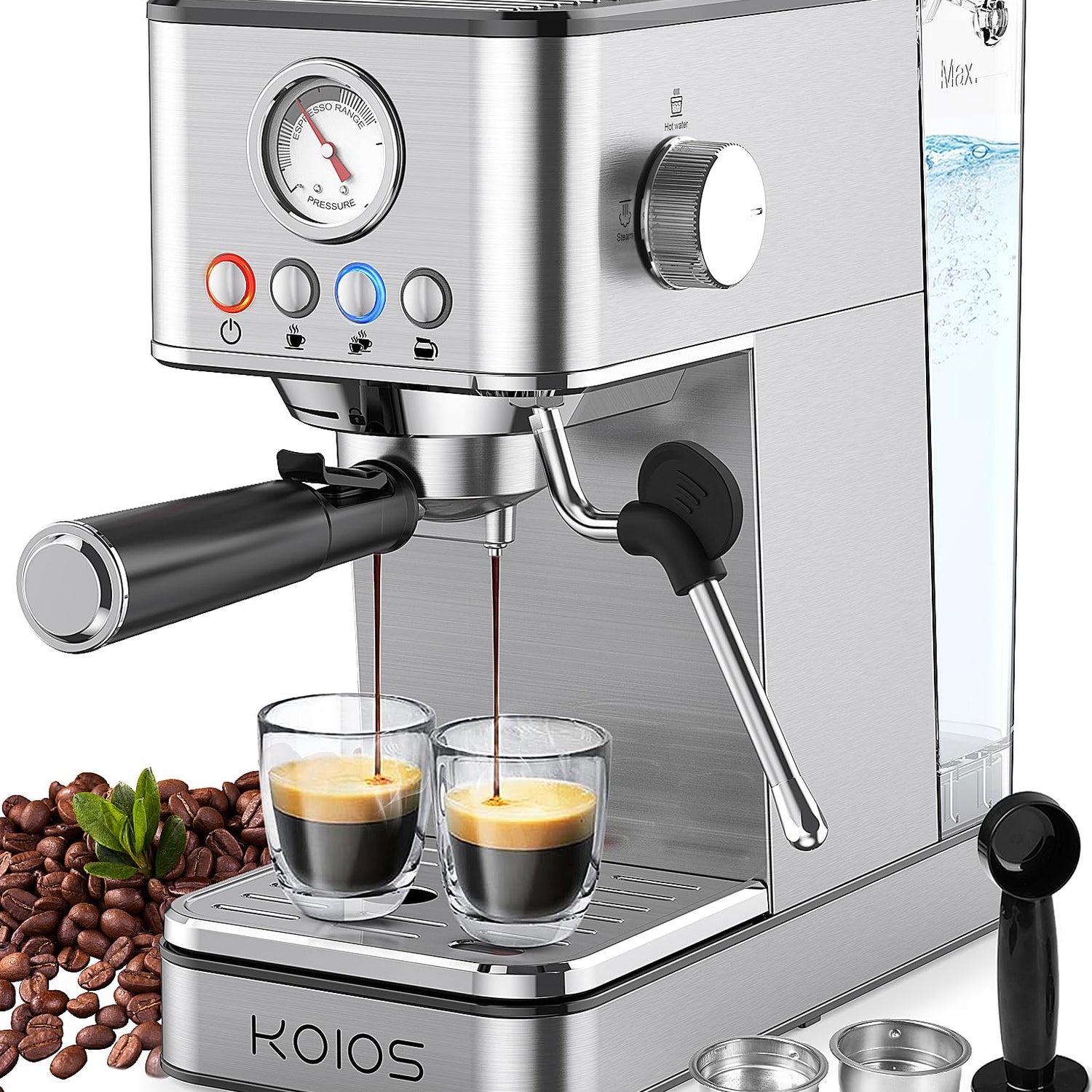 KOIOS Espresso Machines, Upgraded 1200W Espresso Maker with Foaming Steam Wand, 20 Bar Semi-Automatic Steam Espresso Coffee Maker for home, Cappuccino & Latte Machine with 58oz Removable Water Tank