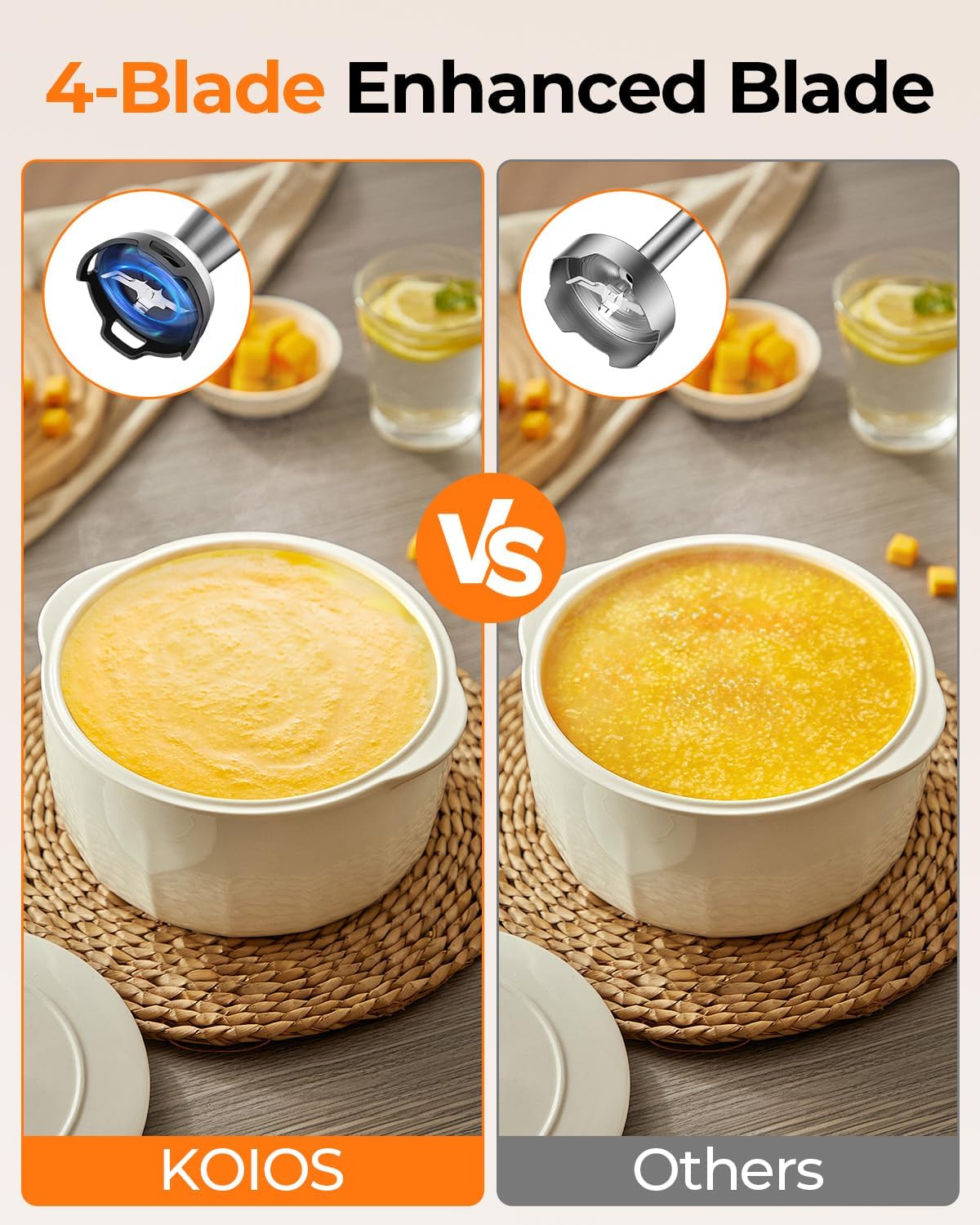 - Powerful Motor and Upgraded Blades:The 1100W all-copper motor delivers strong power to the 5-in-1 immersion blender. It can dramatically increase the mixing and chopping ability in seconds, quickly process the ingredients finely and evenly, and effectively shorten your cooking time. Upgraded 304 food grade stainless steel blades with good resistance to oxidation and high temperature. Safe to use even in hot soups