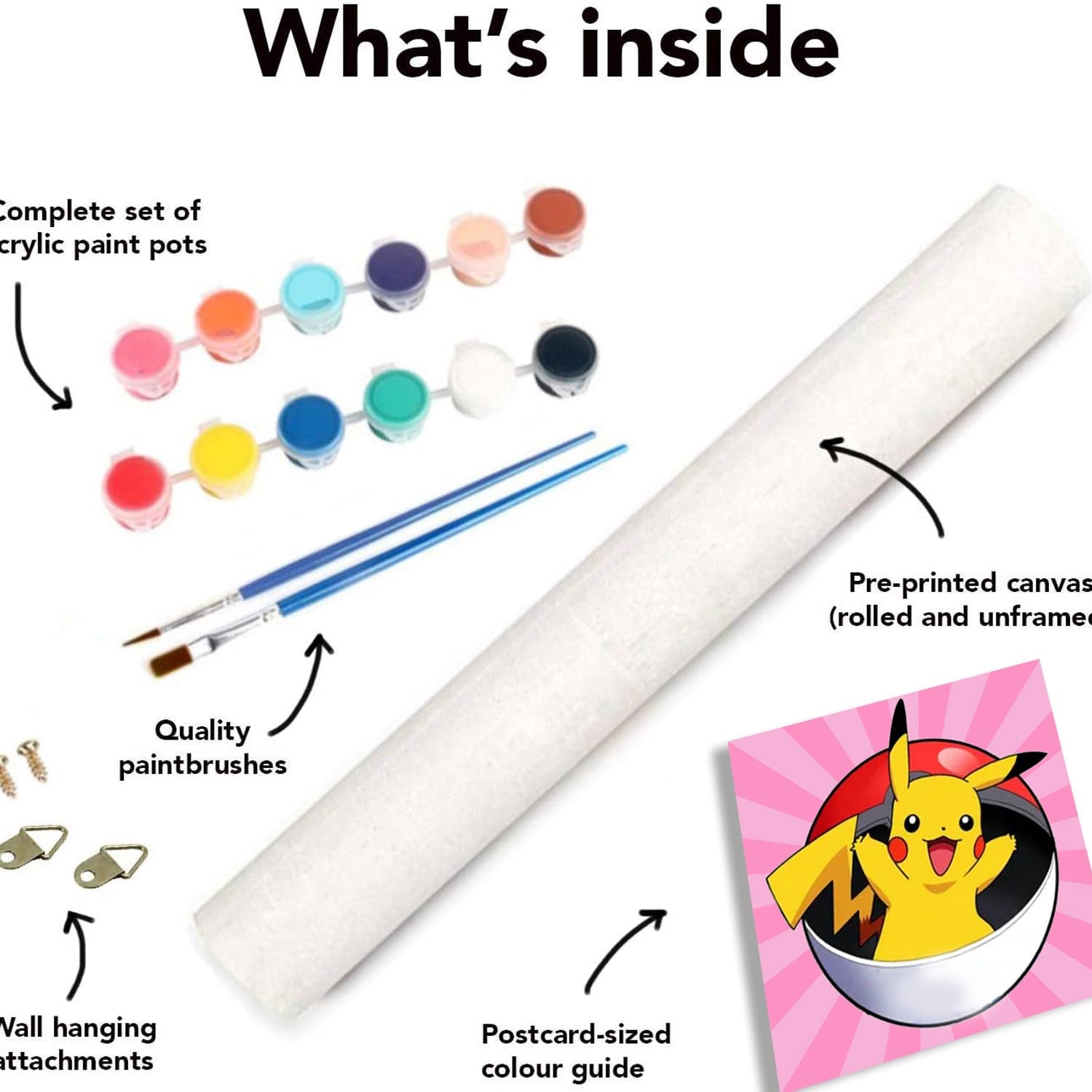- 【Package Include】 Kids Paint by Numbers comes with everything you need. Each set comes with a canvas of cartoon designs printed in light colors, high quality paints, two hooks, and two brushes with different nibs. Kids Paint by Numbers Set can help your kids to create perfect artwork, inspire creativity and relieve stress, please don't miss our "Paint by Number 4-Pack"