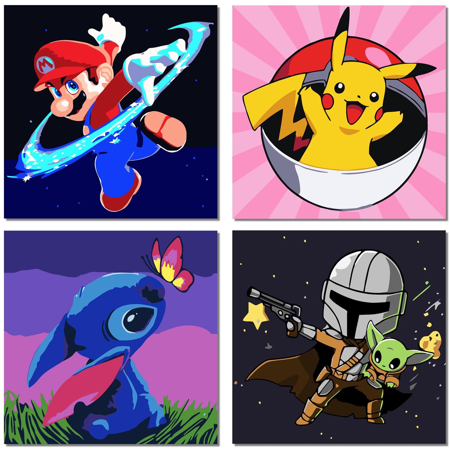 KOJEFCV 4 Pack Cartoon Paint by Number for Kids-Paint by Numbers for Kids Ages 4-8-12, DIY Paints with Numbers Easy Acrylic Oil Painting Kits for Home Wall Decor (8X8inch)