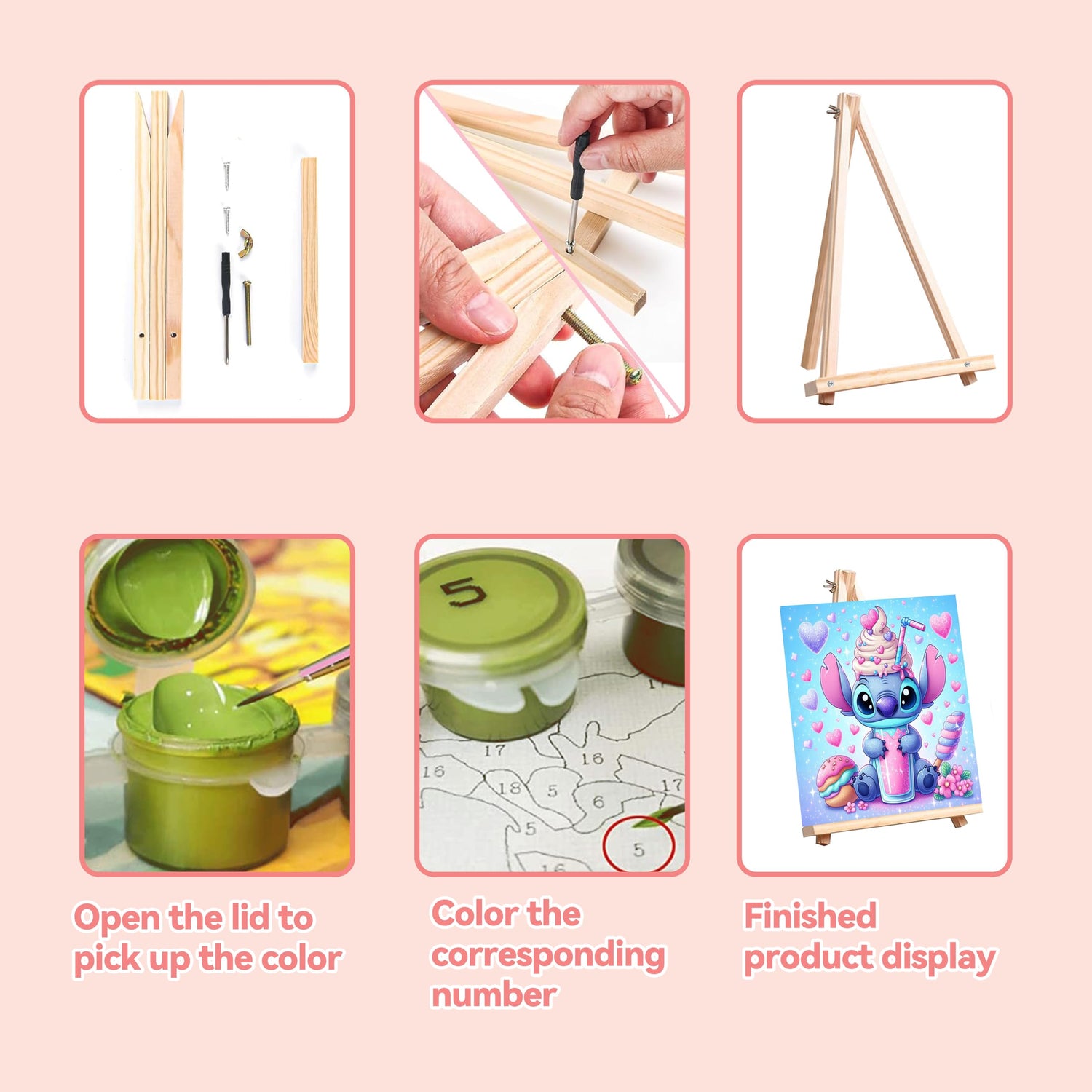 - 【Package Include】 Kids Paint by Numbers comes with everything you need. Each set comes with a beautiful frame (with cartoon design on the frame), high quality paints, two hooks, and two brushes with different nibs. Also comes with 4 pieces of bracket wood and the required screws. Kids Paint by Numbers Set can help your kids to create perfect artwork, inspire creativity and relieve stress, please don't miss our "Paint by Number 4-Pack"