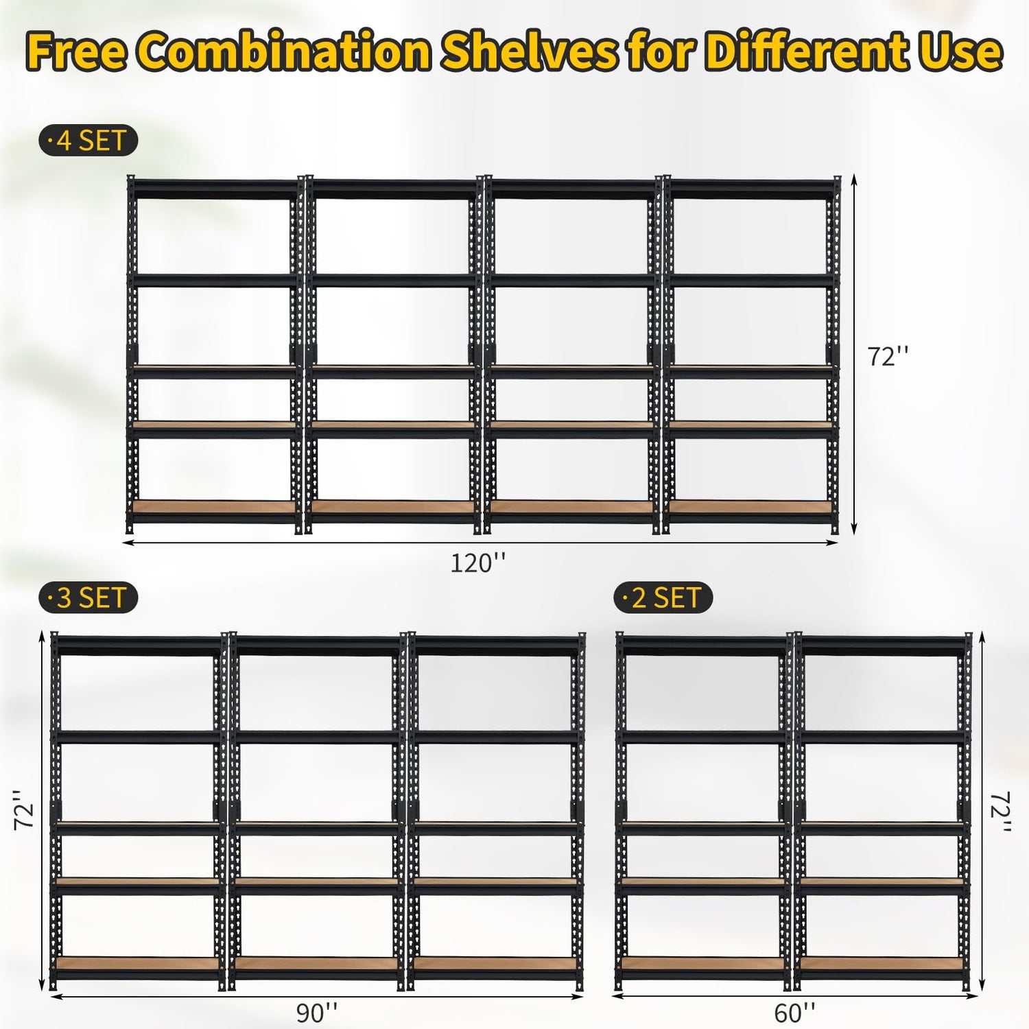 KOKEBREN Garage Shelving Heavy Duty Storage Shelves 2000Lbs Capacity, 5 Tier Adjustable Metal Shelving Unit 48" W x 18" D x 72" H, Industrial Utility Rack for Kitchen Pantry