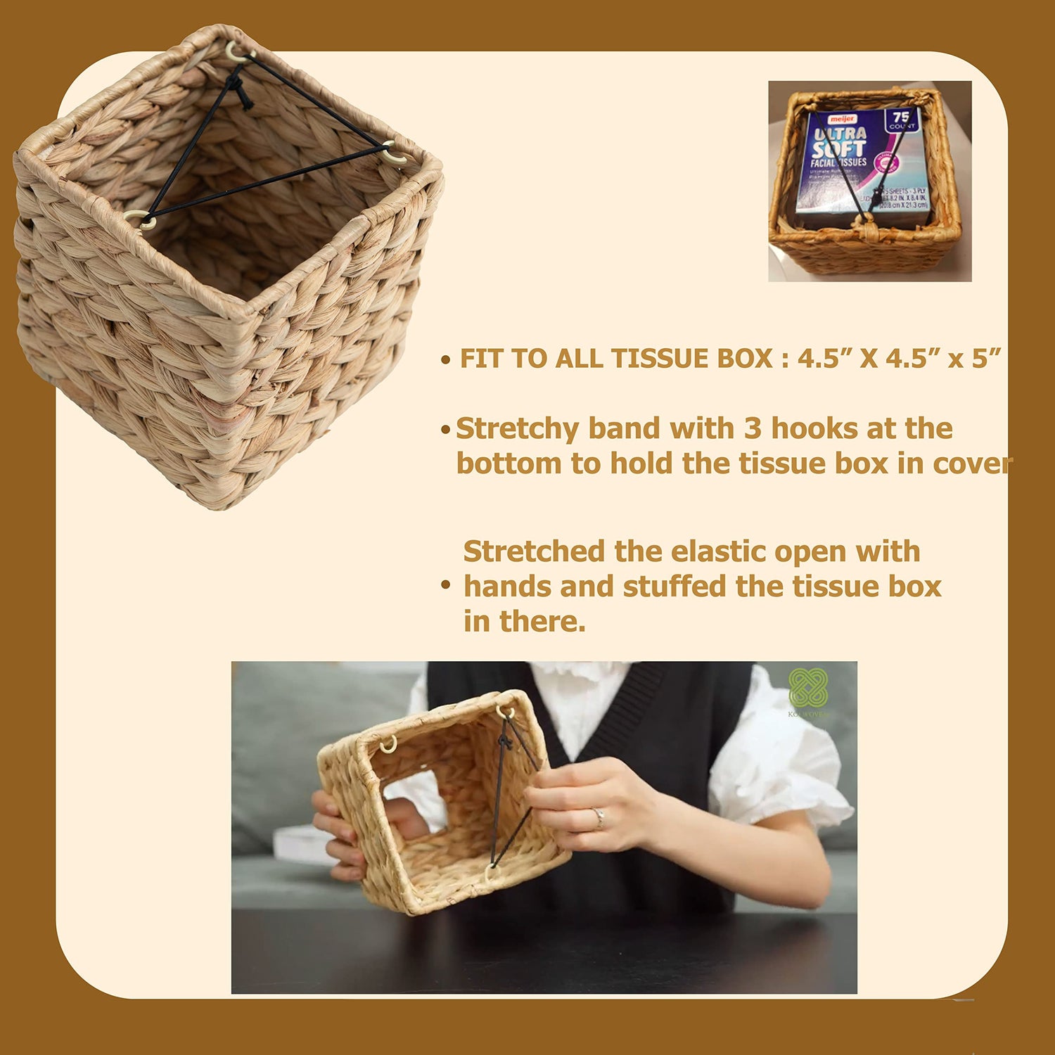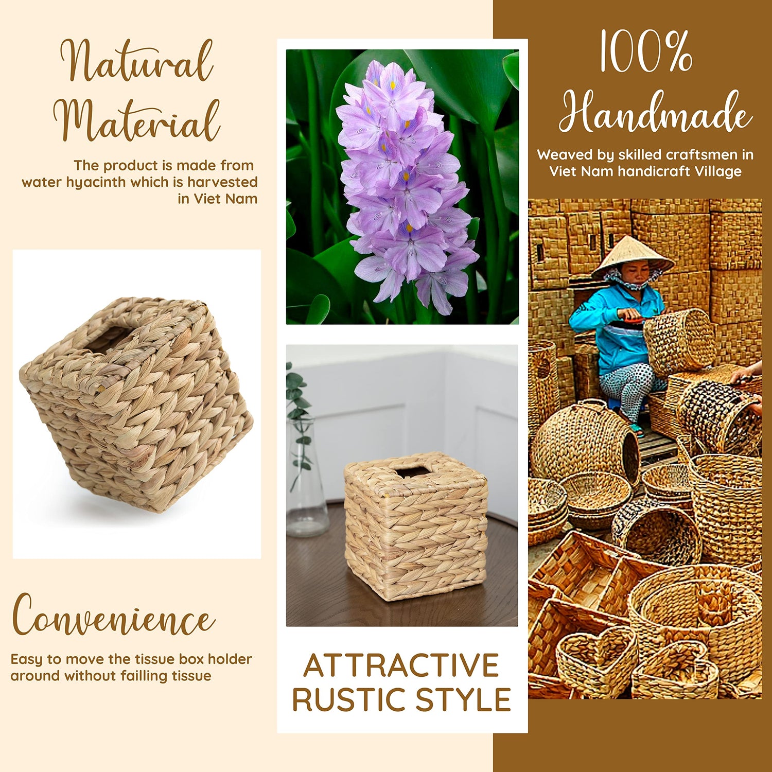 Details: 🌿Package include 1 square rattan tissue box cover. Dimension: 5.7 x 5.7 x 5 inches. Perfect size for daily use.