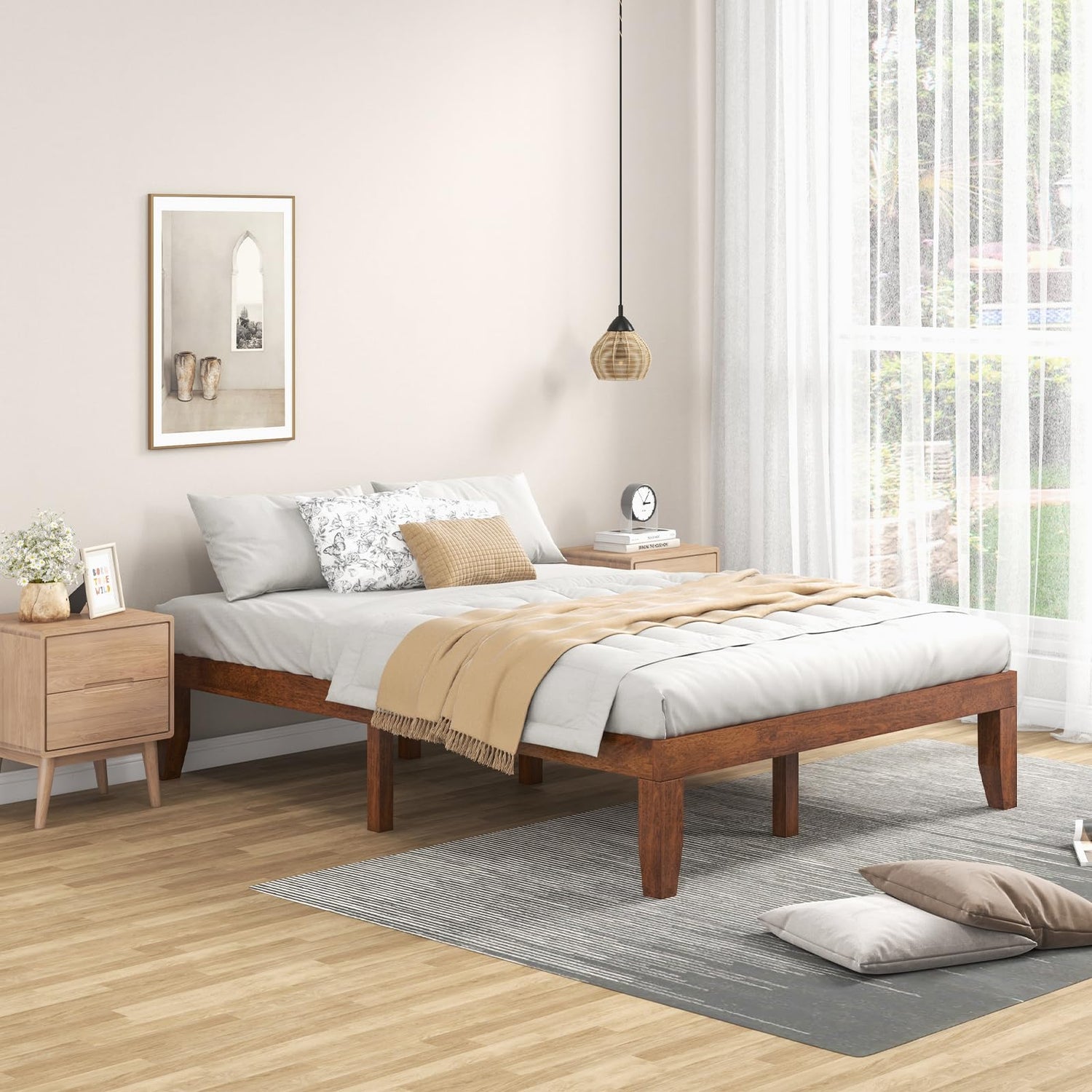 Transform your bedroom with the KOMFOTT 14-Inch Brown Cherry Solid Wood Platform Bed Frame, designed to deliver both style and functionality. Crafted from high-quality rubber wood, this bed frame promises exceptional durability and long-term use, making it a reliable addition to your home.