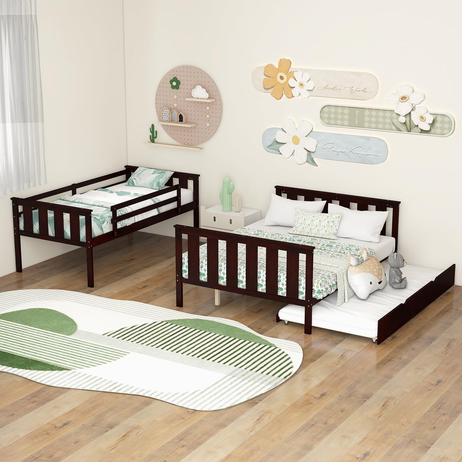 The trundle bed expands extra sleeping area for guests