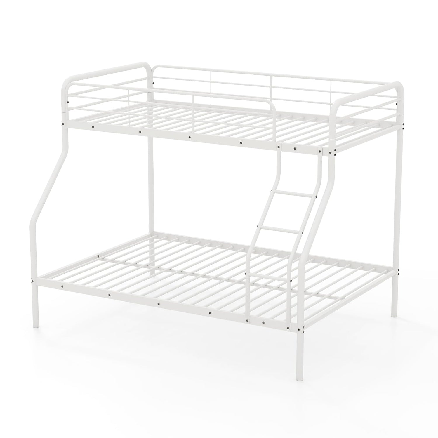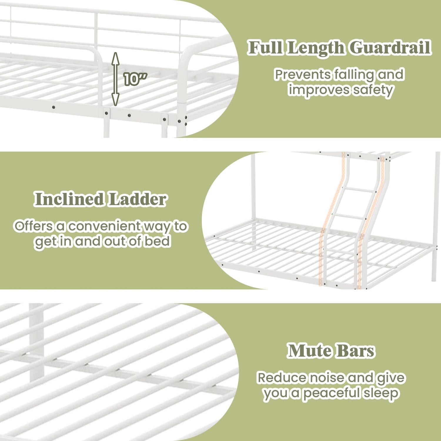 KOMFOTT Twin Over Full Metal Bunk Bed, Heavy-Duty Bunk Bed with Inclined Ladder, Safety Guardrail, Metal Slats Support, Noise-Free Design, Space-Saving Bunk Bed Frame for Teens & Adults (White)