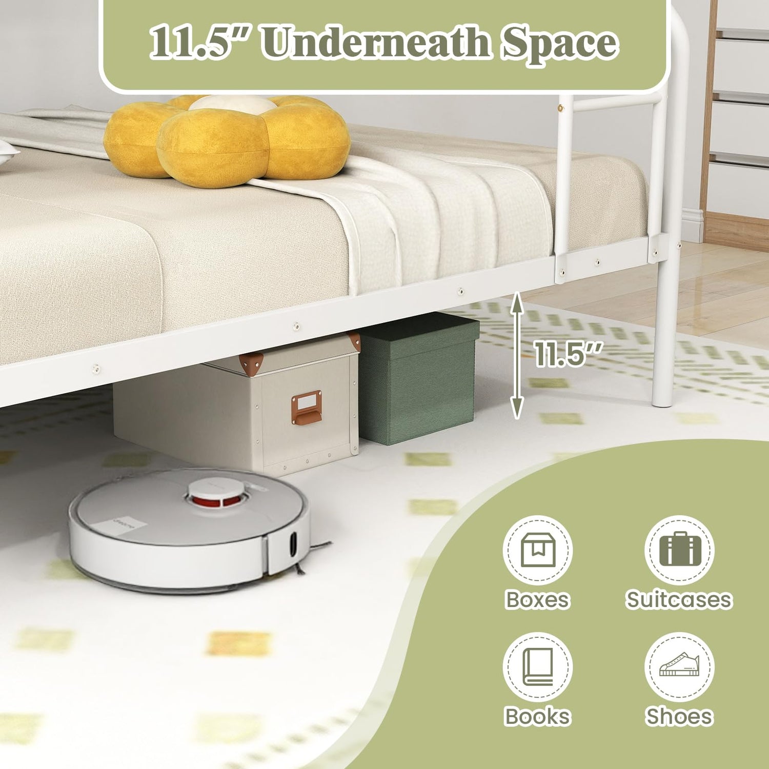 - 11.5" Underneath Space: Utilize the 11.5" clearance under the bunk bed for storing boxes, suitcases, books, shoes, etc, creating a neat and organized room. Additionally, the space is accessible for vacuum robots, making cleaning easier.
