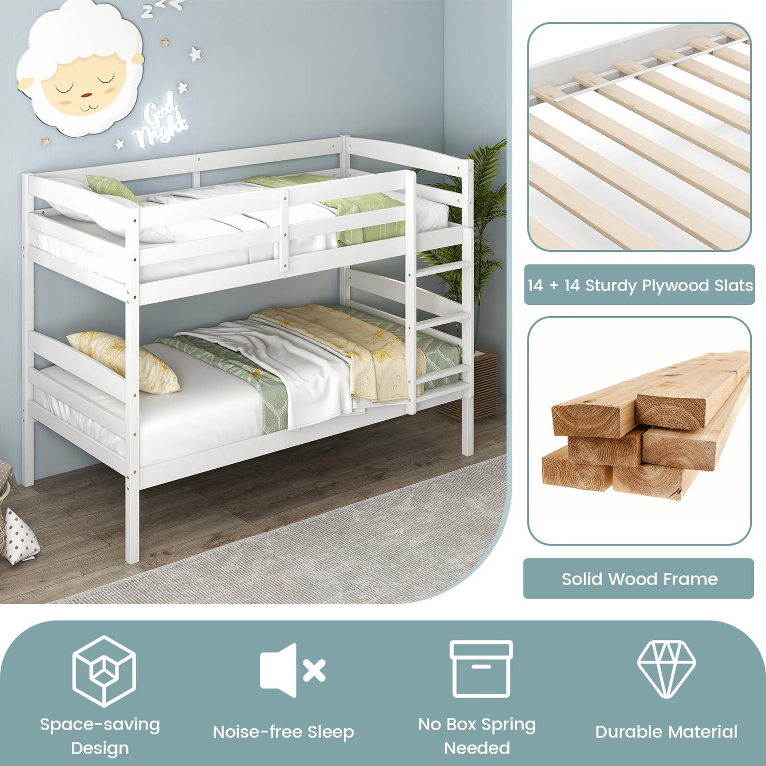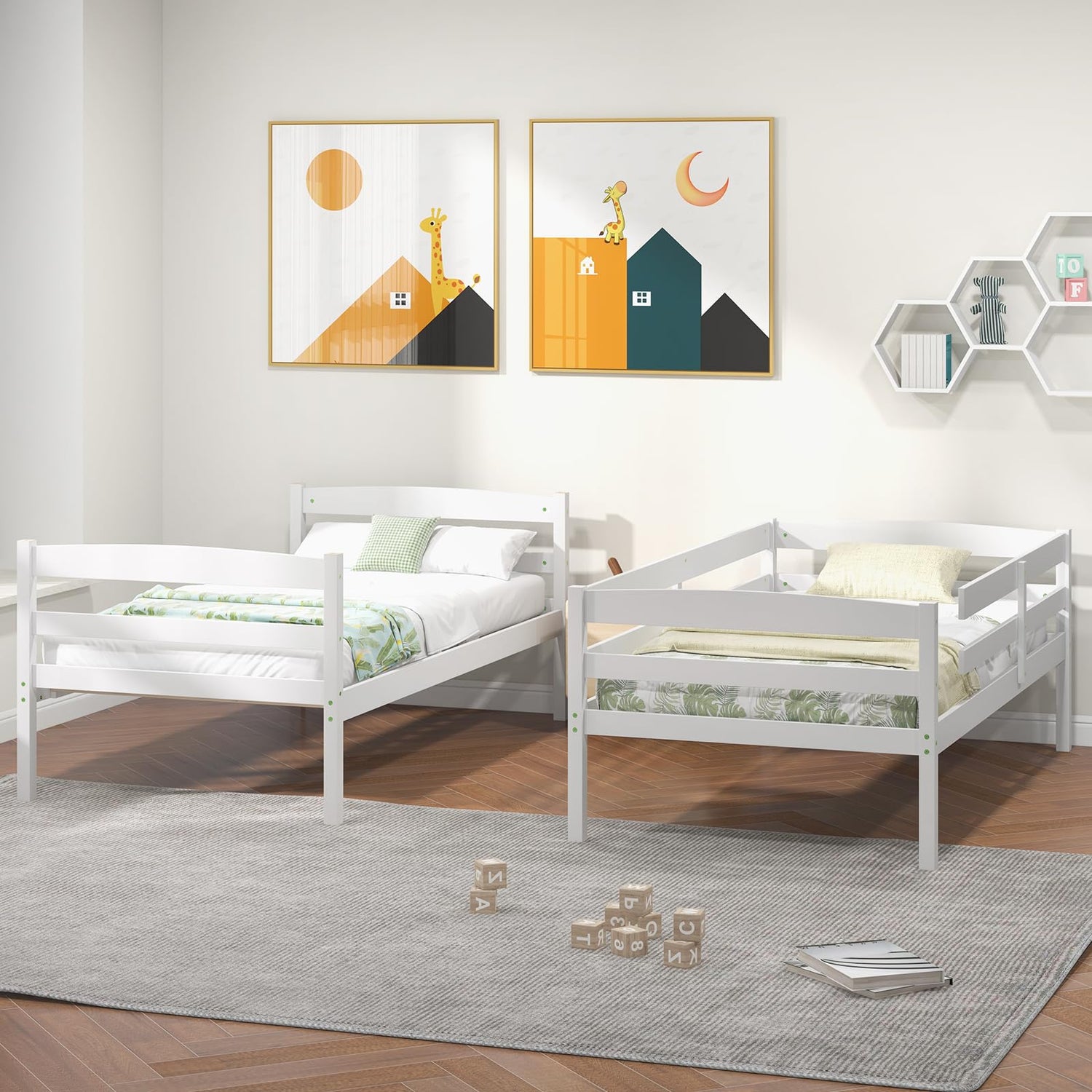 Transform your children's bedroom with the KOMFOTT Twin Over Twin Convertible Bunk Bed, designed with both functionality and safety in mind. This stylish bunk bed features a space-saving solid wood design in an elegant white finish, perfect for making the most of your living space.