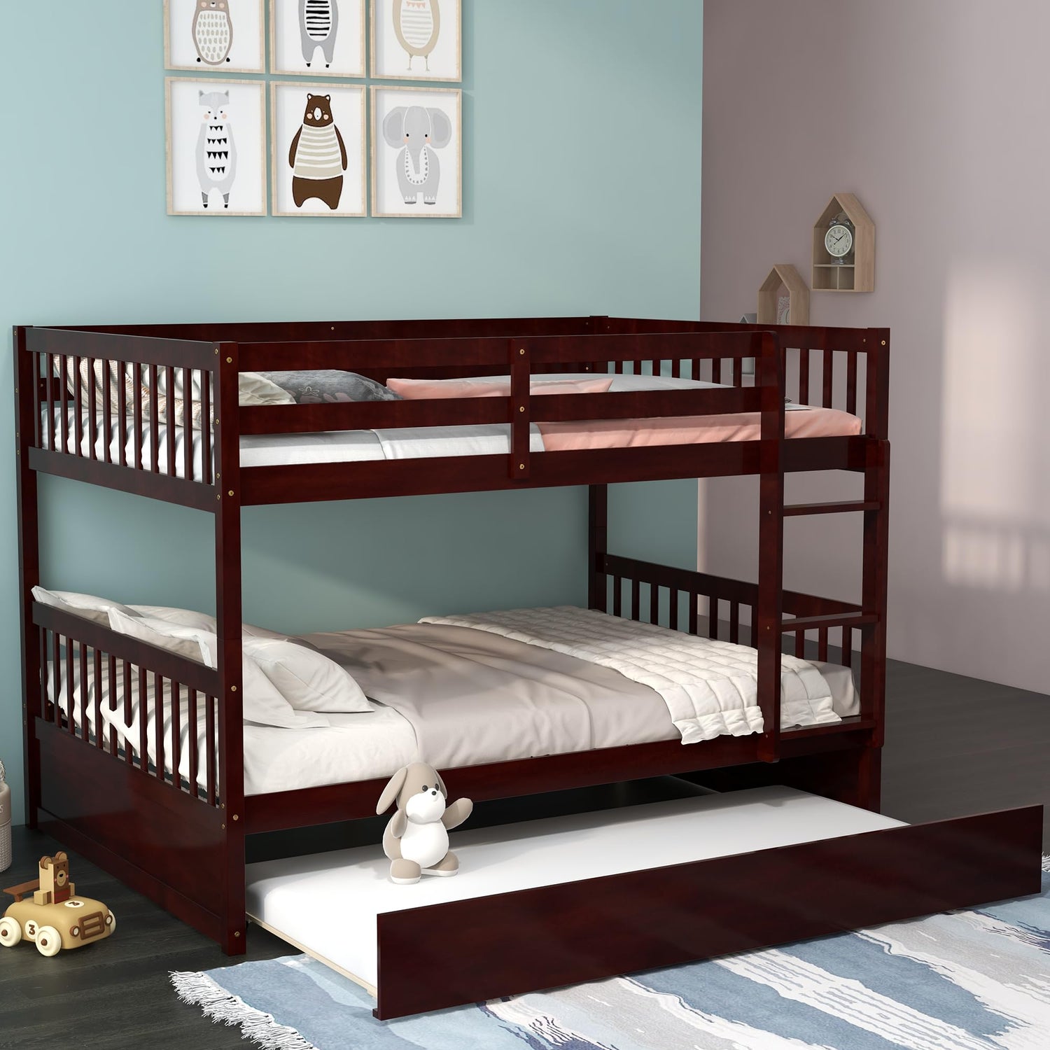 KOMFOTT Solid Wood Full Over Full Bunk Bed with Trundle and Ladder – Space-Saving Design for Teens and Adults