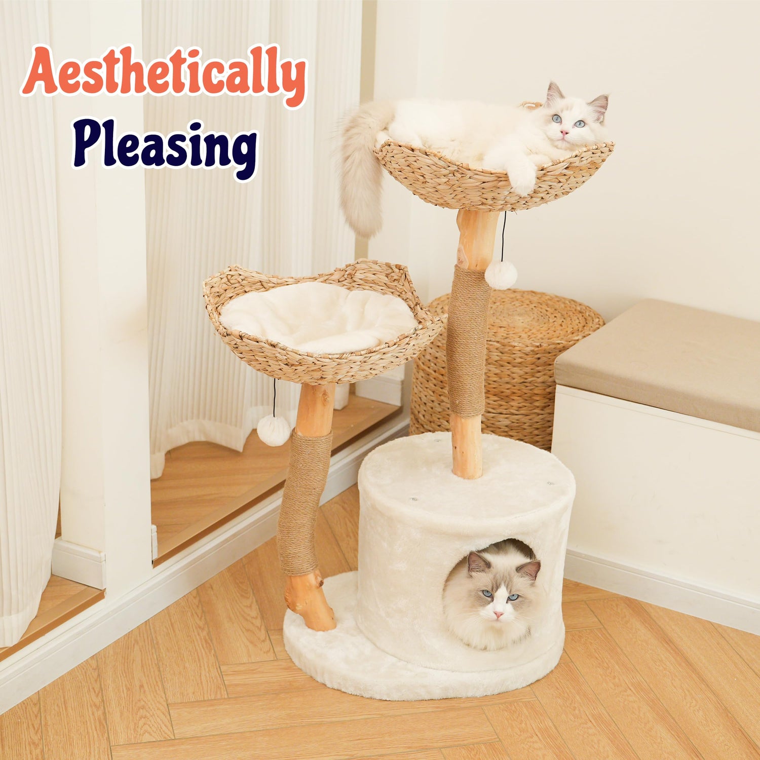 - Nature-Inspired: Crafted from polished all-natural tree trunks, this wood cat tower is a beautiful work of art that is made to stand the test of time. Its alluring aesthetic adds rustic charm to your home
