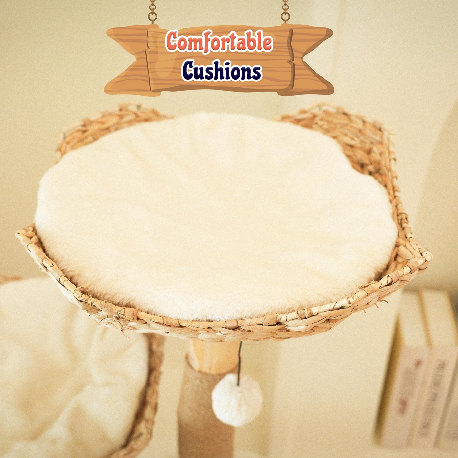 - Twice The Comfort: With two spacious baskets, our modern cat tree will have your feline friends lounging and napping in exceptional comfort, making it the purrfect sanctuary