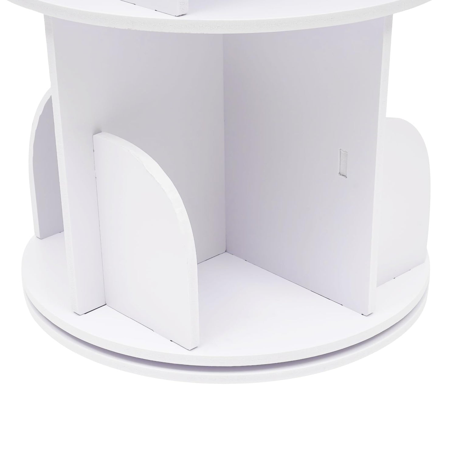 Versatile and functional, this white 2-tier rotating bookshelf adapts to various needs within your home. Whether you use it as a side table for practical items, a storage solution for adult literature, or a convenient organiser for children's books and toys, it provides easy access for all ages. Its design makes it particularly well-suited for classroom libraries and compact living areas where space is at a premium.