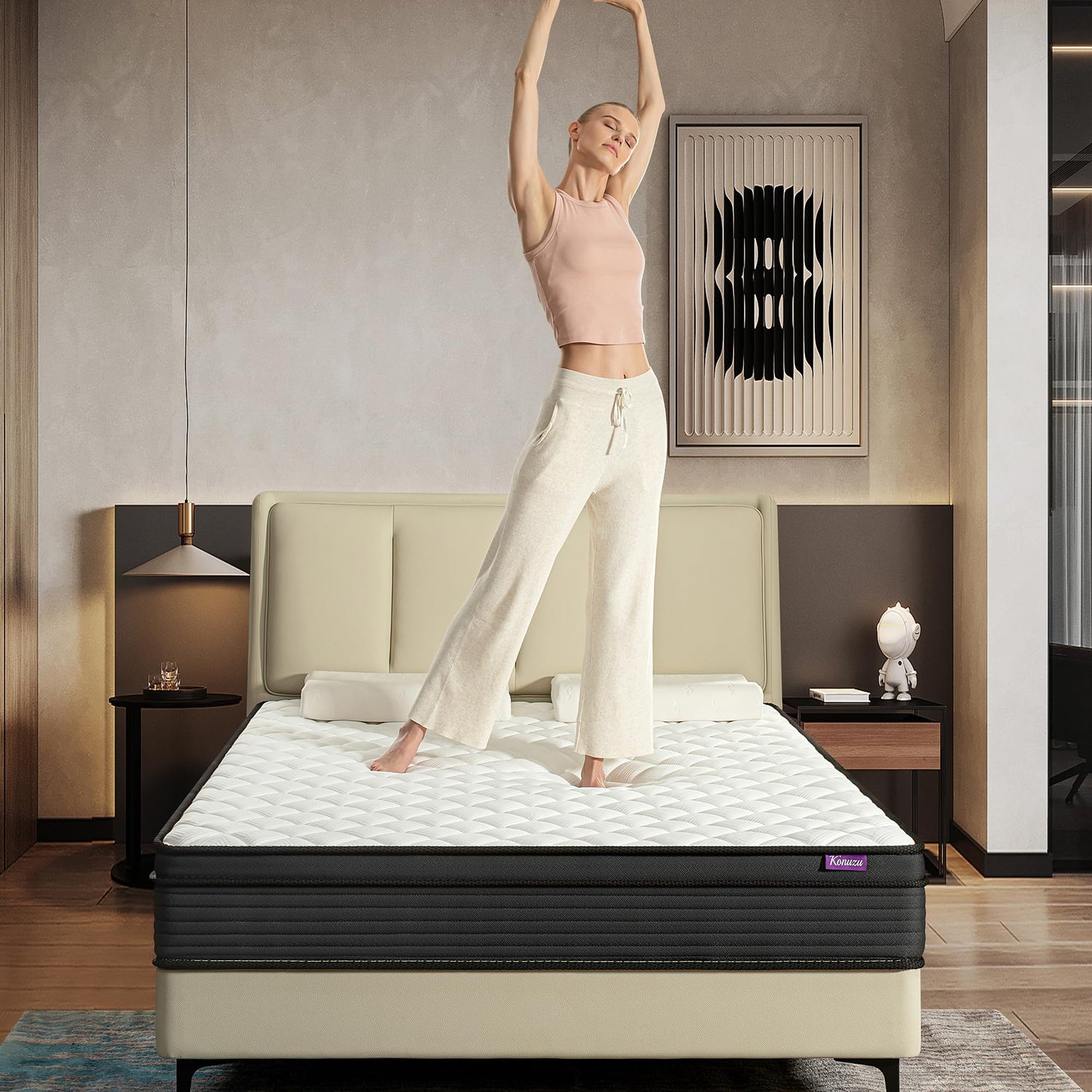 Konuzu Queen Mattress,12 Inch Memory Foam Hybrid Mattresses in a Box with Individual Pocket Spring,for Pressure Relief & Motion Isolation Queen Size Mattress.