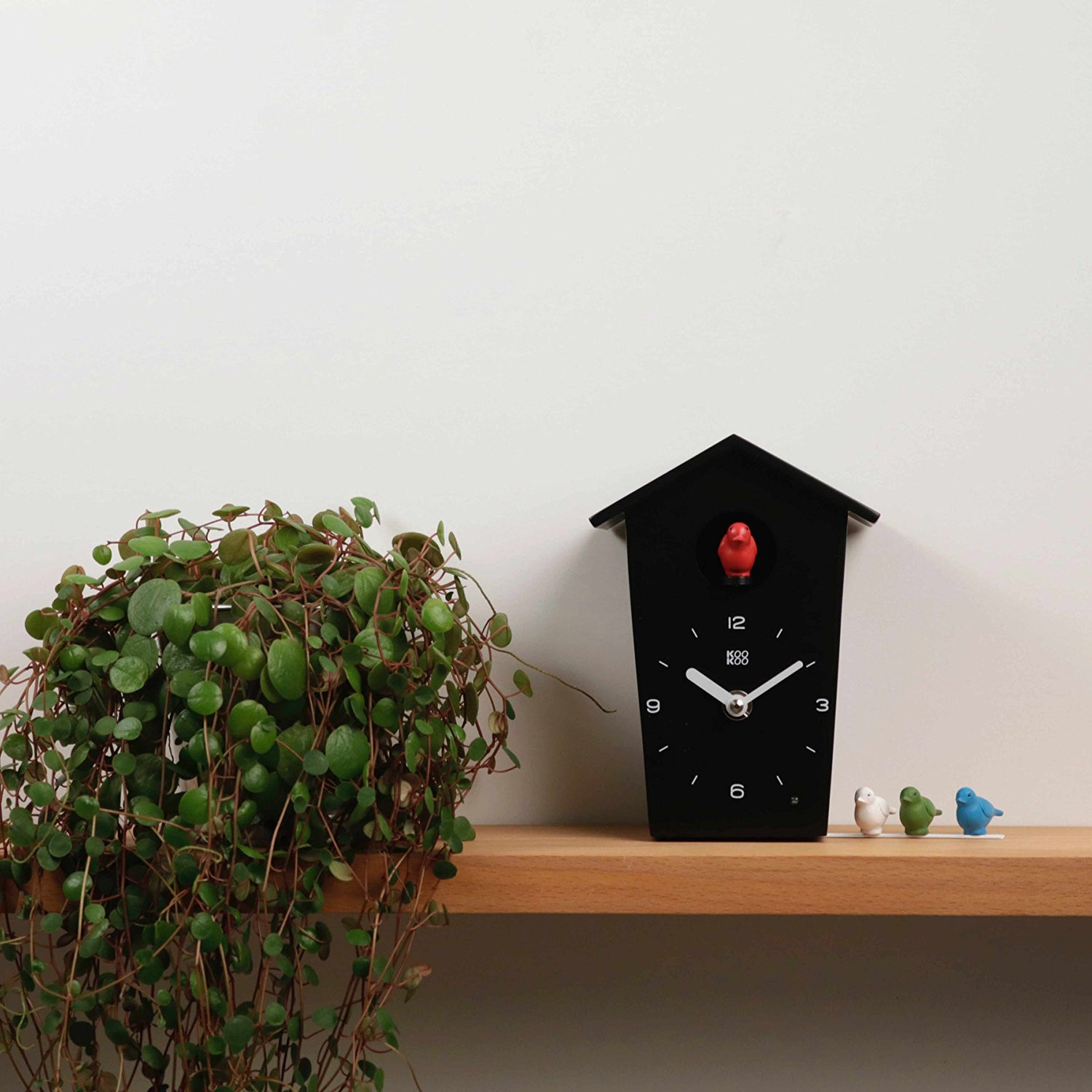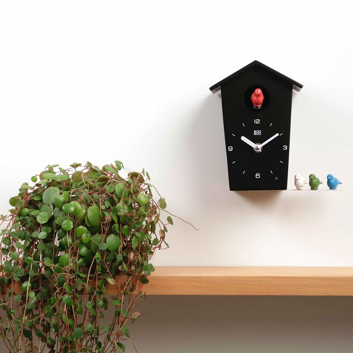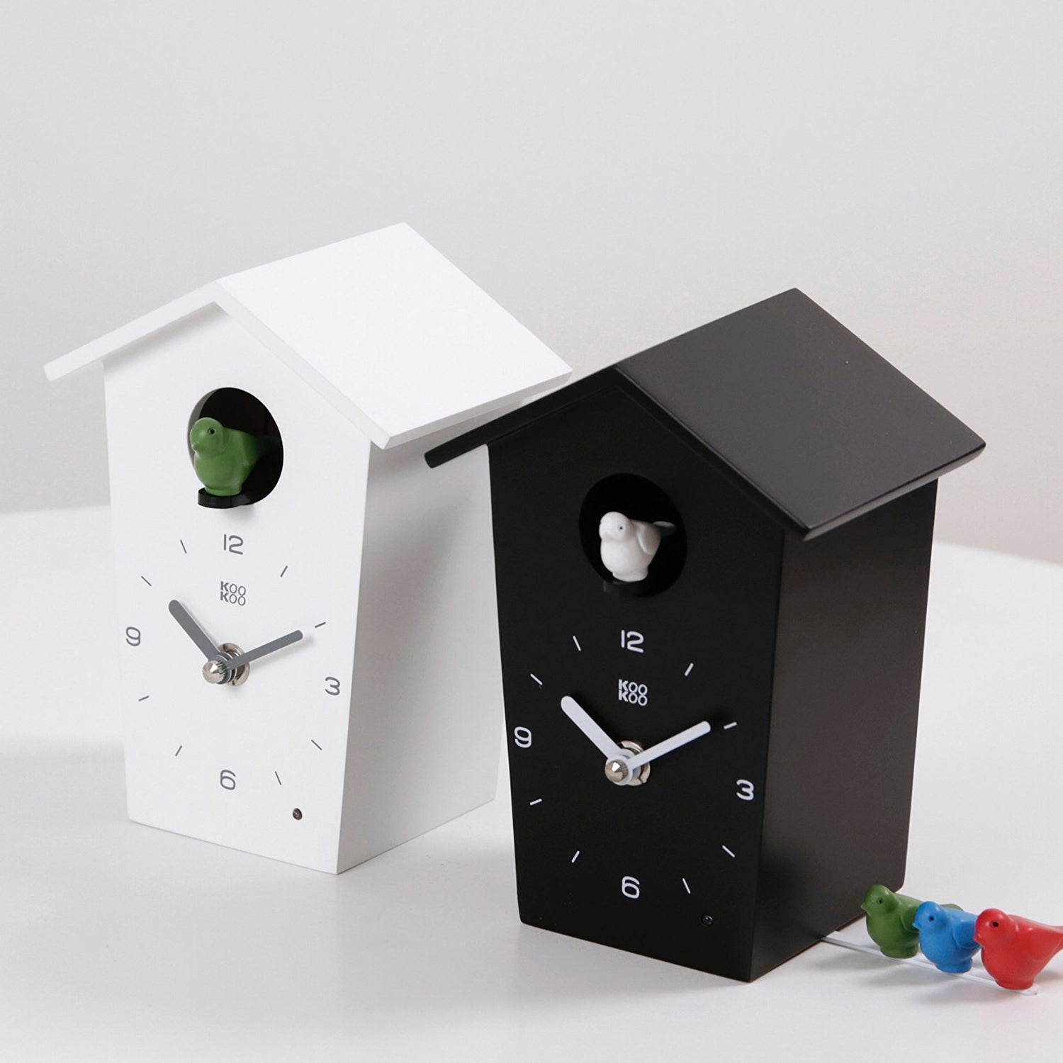 • Small modern and quirky cuckoo clock with understated design in black or white.