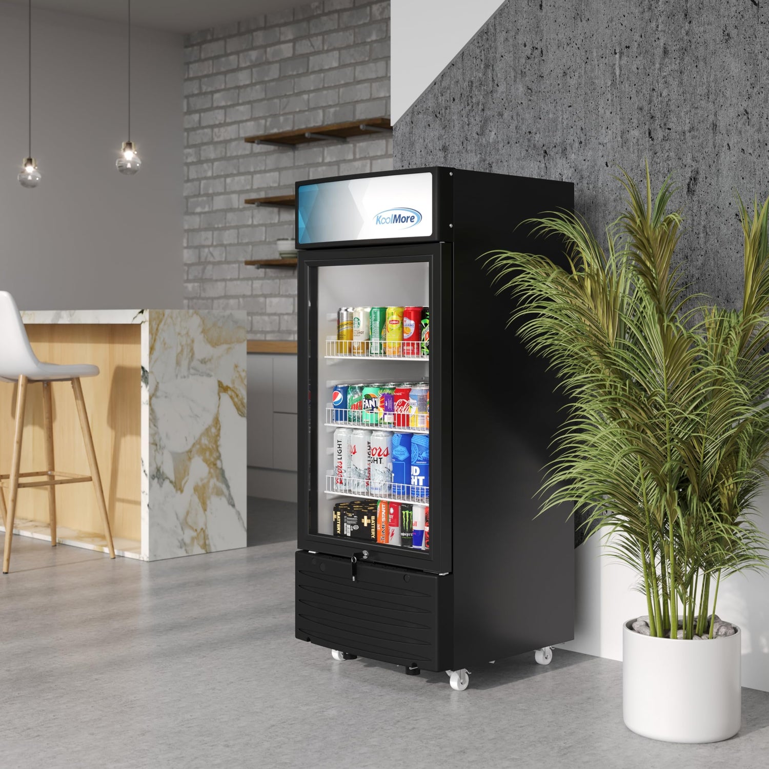 KoolMore KM-MDR-1D-6C 6 Cu. Ft. Commercial One Glass Door Display Upright Beverage Refrigerator Cooler Merchandiser-22.8 in. x 21.4 in. x 52.7 in. [Black]