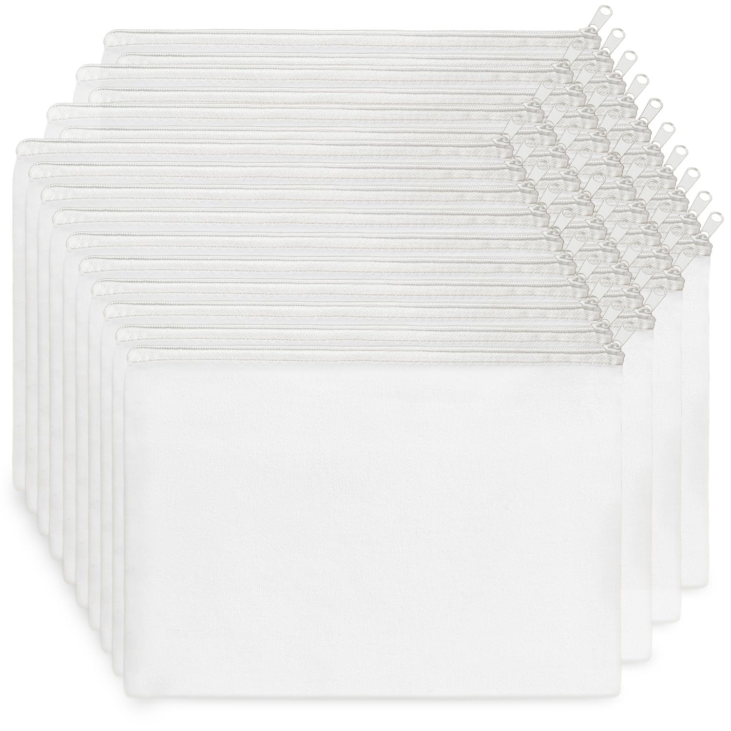 Koolmox Canvas Zipper Pouch, 40 Blank White Cloth Pouch, Pencil Pouch White Sublimation Cosmetic Pouches Blanks Makeup Bags Bulk, Black Zipper Canvas Bag Blanks for Vinyl Projects Decorating