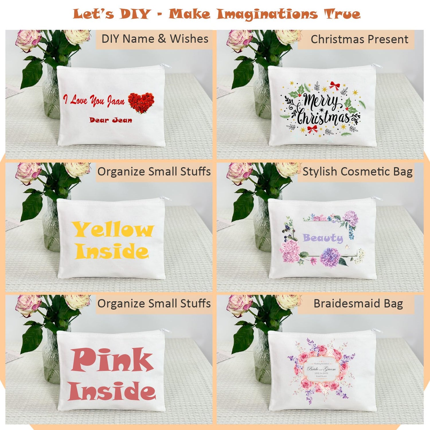 - Multi-Functional Pouches -- plain cotton bags with zipper are perfect to be customized for wedding, bridesmaid, hotel, birthday, celebrations as giveaways bags, gift bags, party favor bags to coworkers, friends, bridesmaids; For women as cosmetic pouches; Stationery bag. Also for shop keepers to cricut with logo for retail bags, etc. ("THIS ITEM IS NOT INTENDED FOR USE BY CHILDREN 12 AND UNDER.")