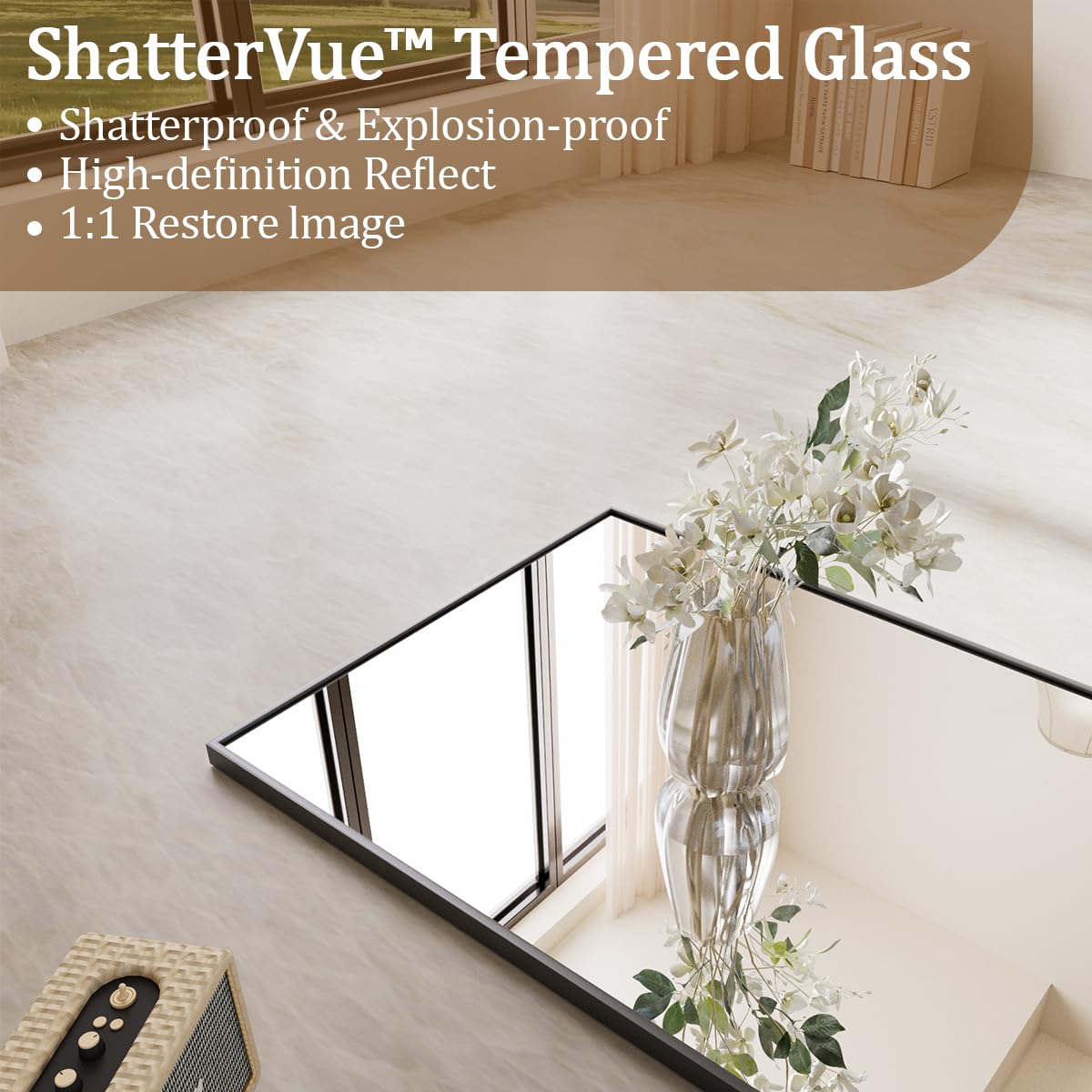 - SHATTERVUE TEMPERED GLASS & ALUMINIUM ALLOY FRAME: Our floor length mirror is made of 3mm mirror, which ensures high-definition imaging without distortion, while also laminating an explosion-proof film on the back. In addition, the full body mirror is made of high quality aluminium alloy frame, which is sturdy and durable, with longer service