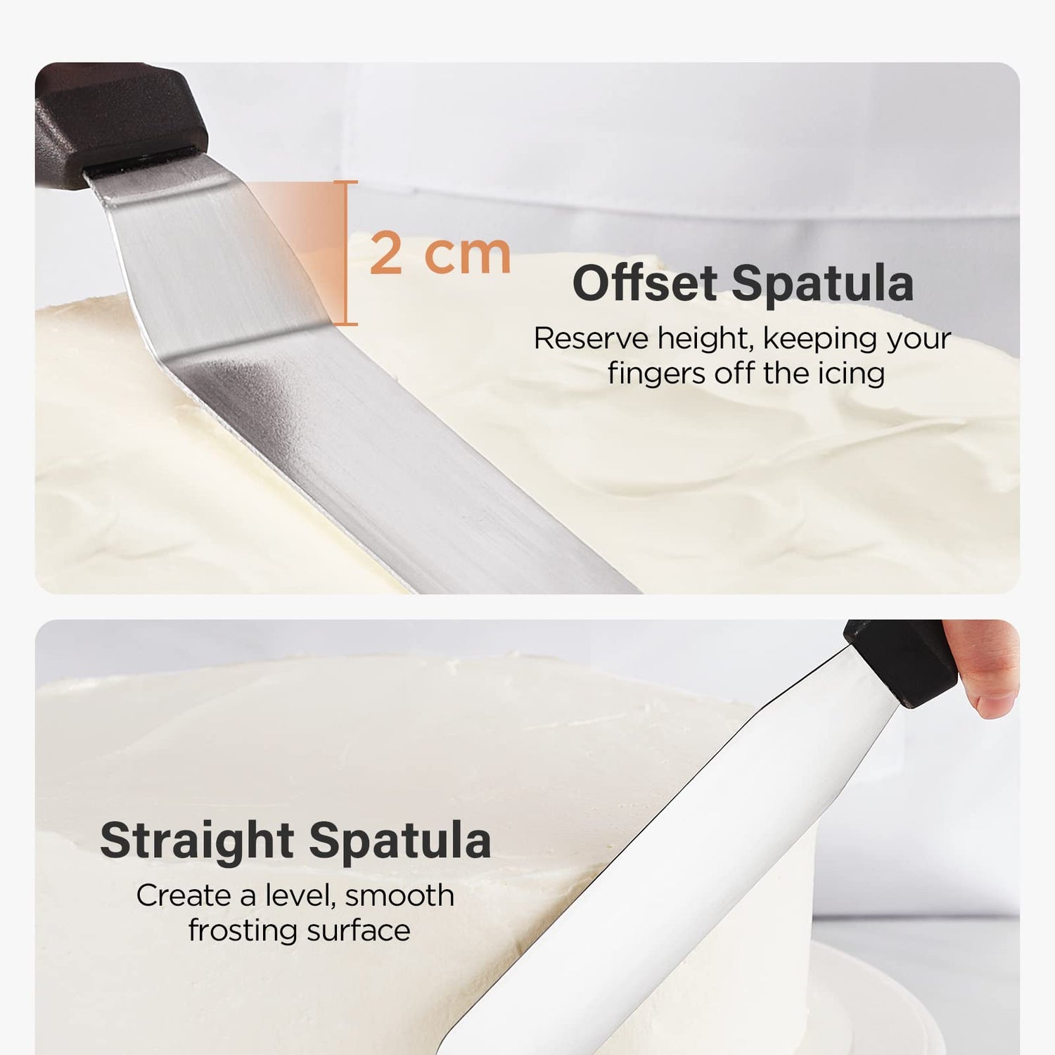 - Cake Decorating Kit: The included spatula can help you better remove the cake from the cake pan and use the cake leveler to better obtain a flat cake surface for the subsequent frosting of the cake. The piping bags and tips set can draw different patterns and flowers for the cake, which is better for decorating the cake. These baking supplies can meet your basic baking tool needs and is a friendly companions for baking lovers.