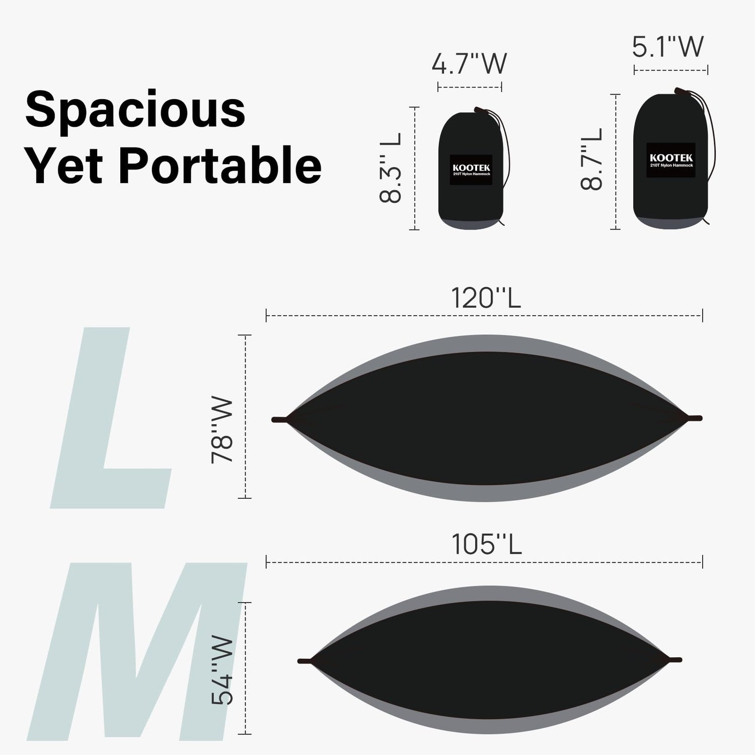 Kootek Camping Hammock 500 lbs Capacity, Portable Hammocks with Tree Straps & Attached Carry Bag, Camping Essentials Gear, Perfect for Outside Indoor Hiking Beach Backpack Travel