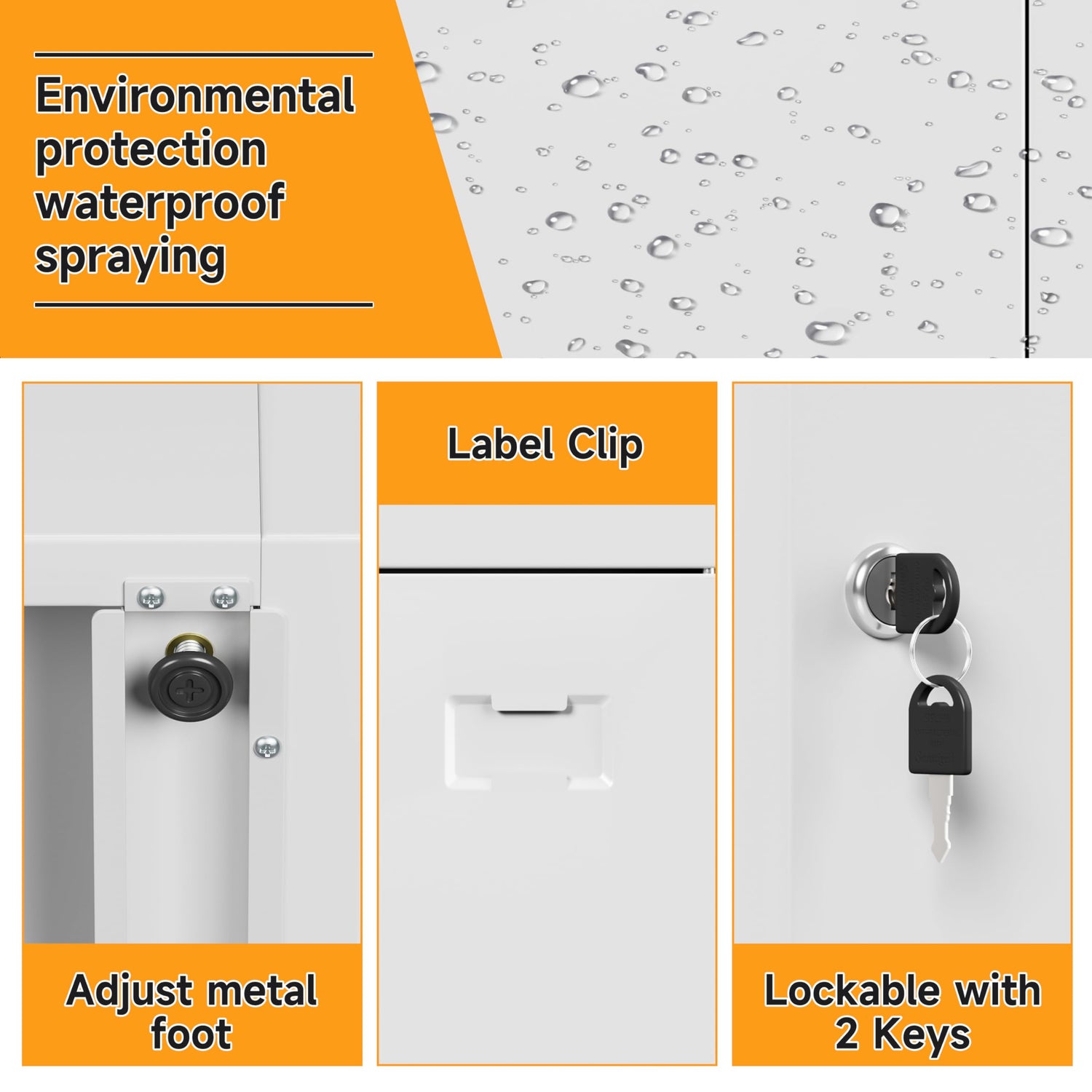 - ❆【SECURE STORAGE】Locking tall storage cabinet adopts an upgraded version of the three-point lock system, and the steel rods are thickened to provide higher security for your valuables and important items. 2 keys included, which can be used by co-owners or as a backup in case of loss.