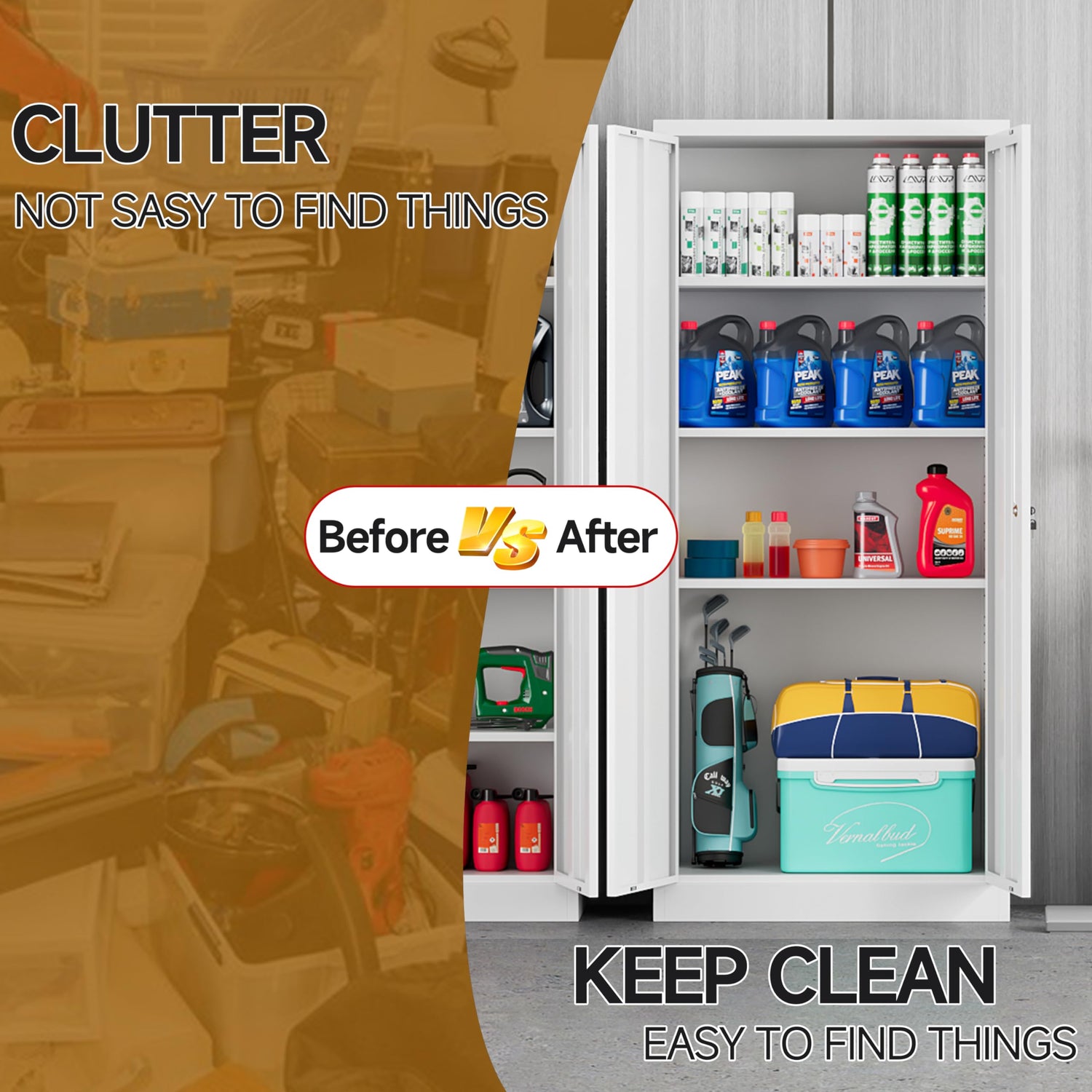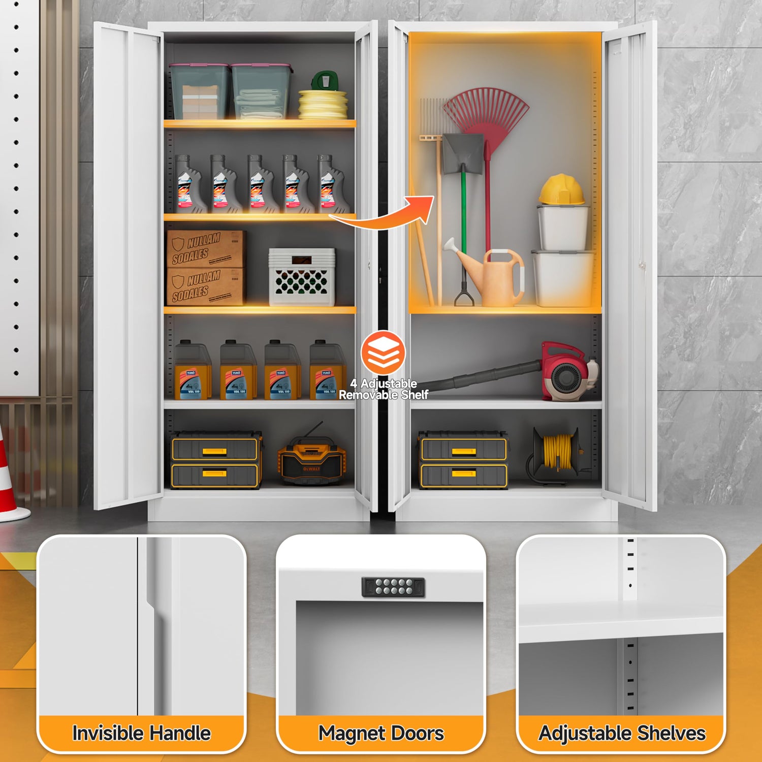 Kooyon Metal Storage Cabinet with Locking Doors and 4 Adjustable Shelves,71"" Tall Metal Garage Storage Cabinet,Metal Cabinet Storage for Office,Home,Garage,Gym,School (White/Required-Assembly)